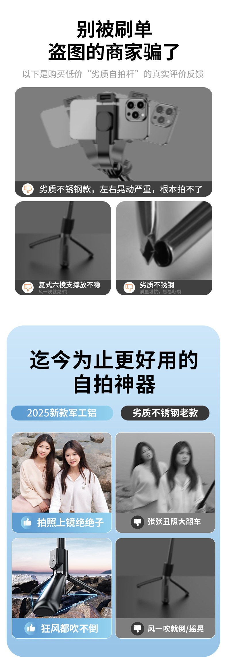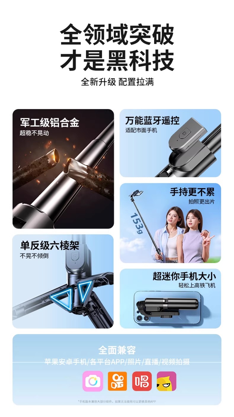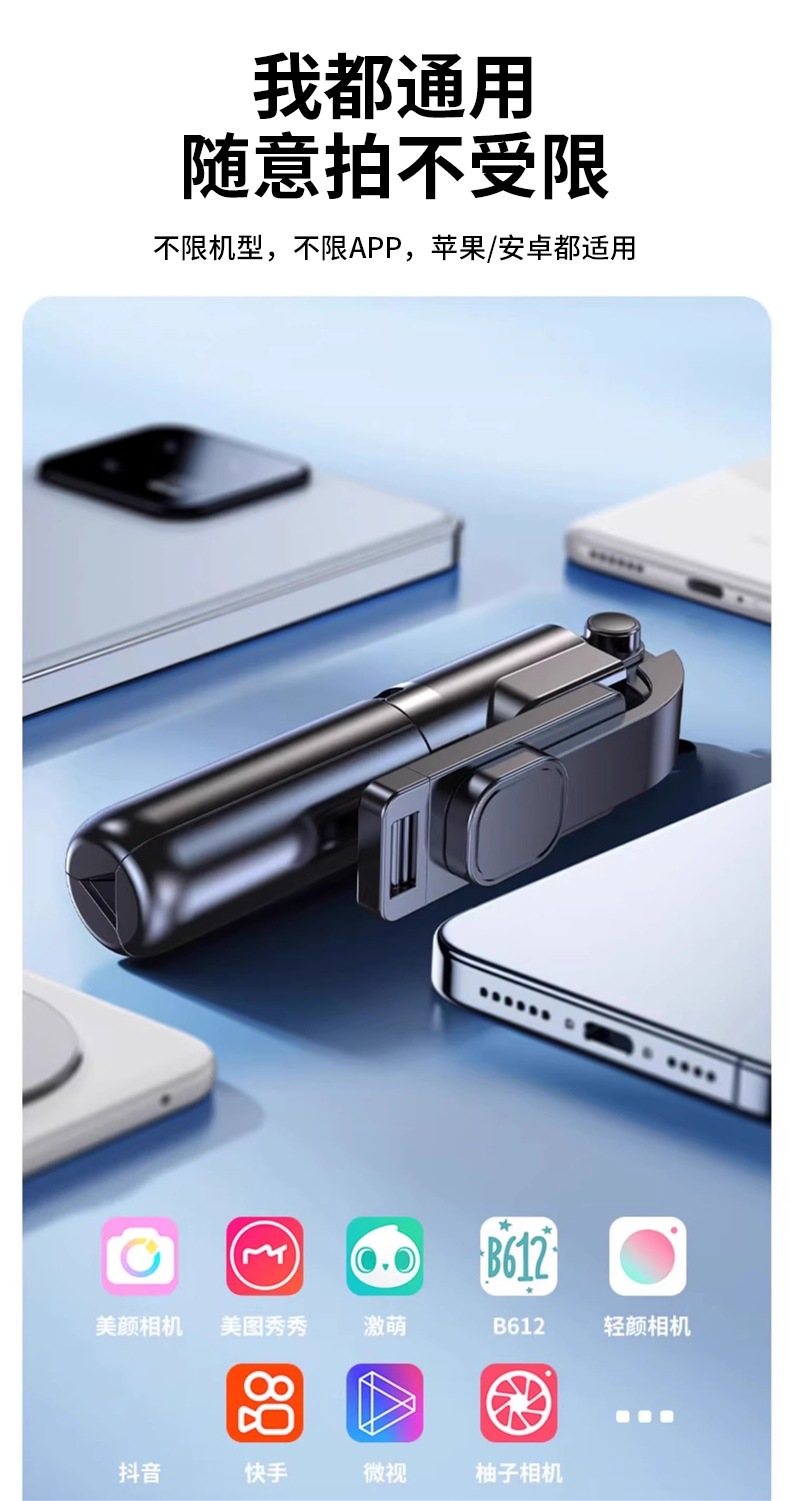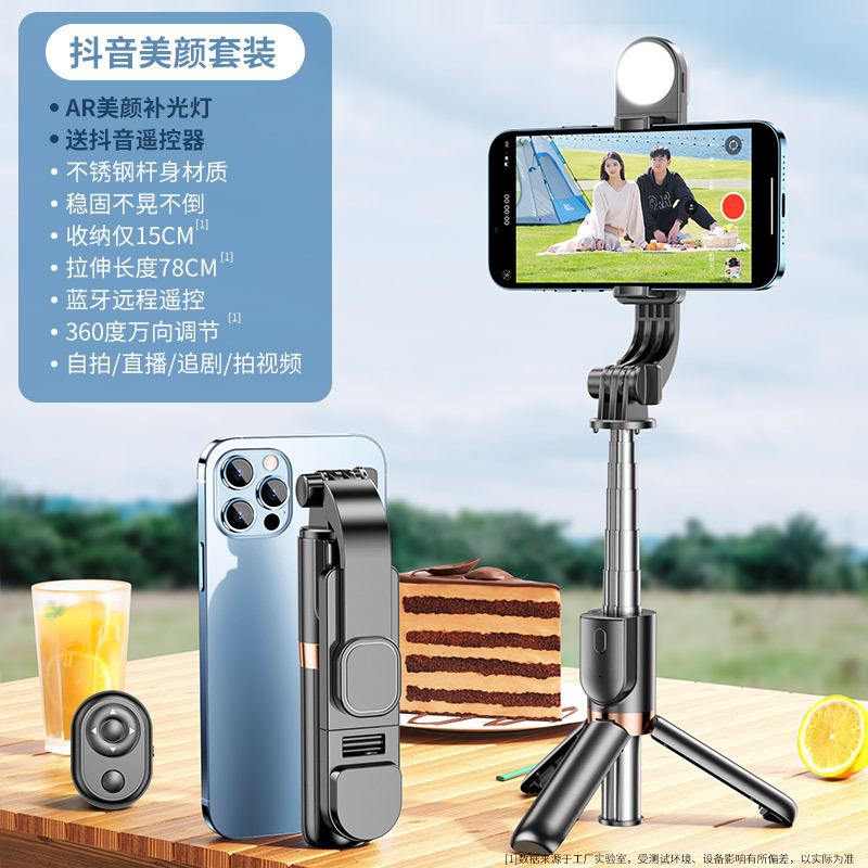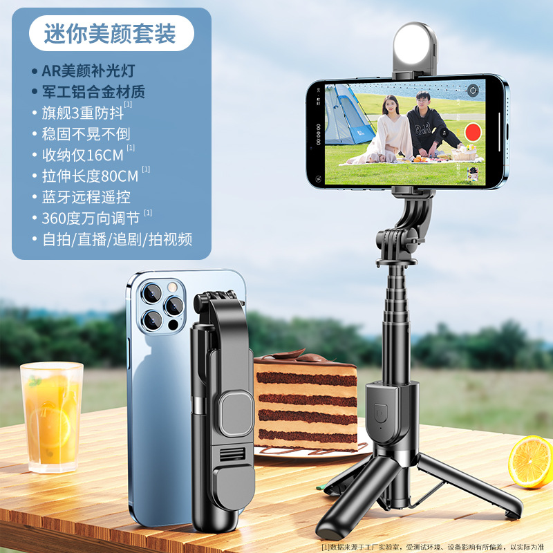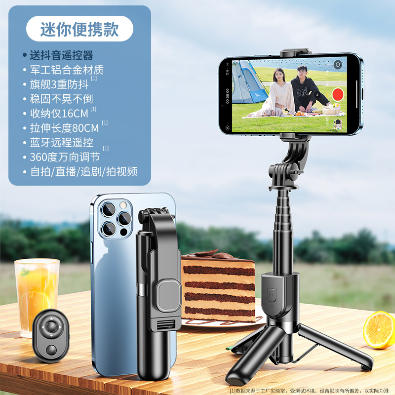 • 무료 Douyin 리모콘 블랙 [플래그십 에디션] 매우 안정적인 알루미늄 합금 + 우산 삼각대 + 립스틱 크기 + 블루투스 리모콘 + 통합 스탠드 √.