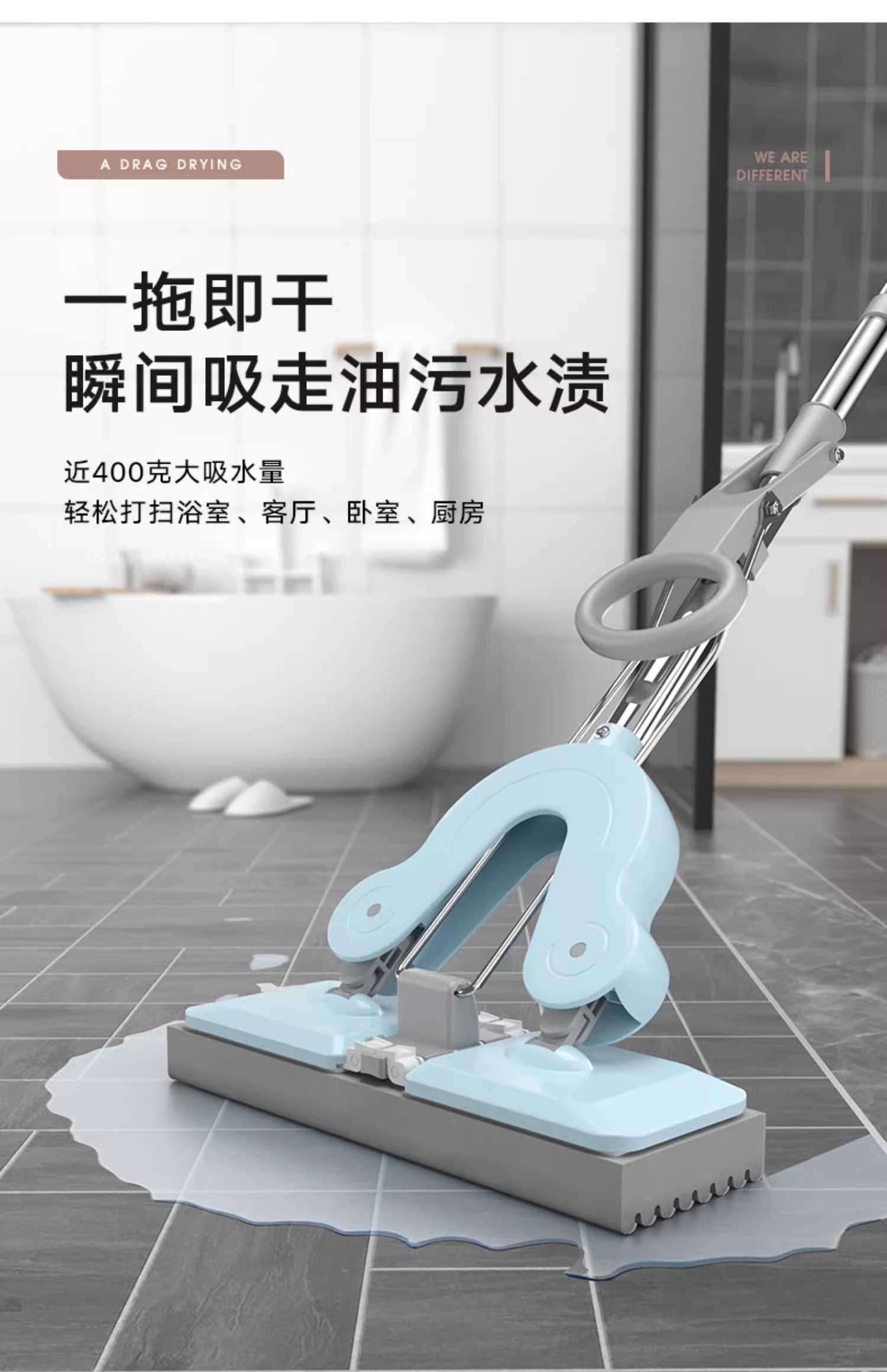 핸즈프리 스펀지 플랫걸레, 게으른 사람들을 위한 대형, 걸레 1개, 물 흡수, 접이식 콜로이드 면걸레, 타오센스토어 가기