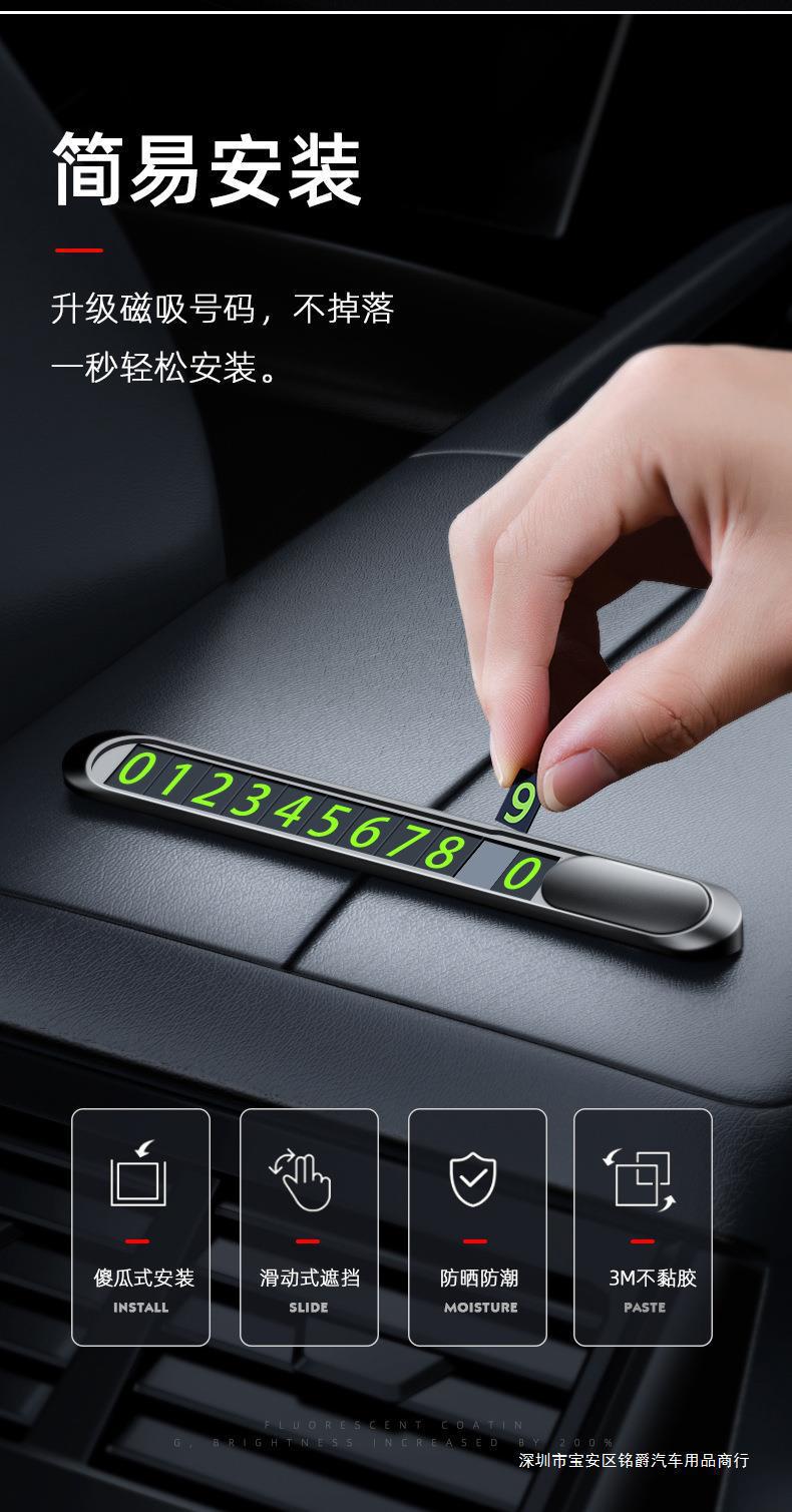 주차 표시 자동차 액세서리 차량 이동 전화 임시 주차 표시 번호 창의적인 디지털 자동차 용품 빛나는 금속