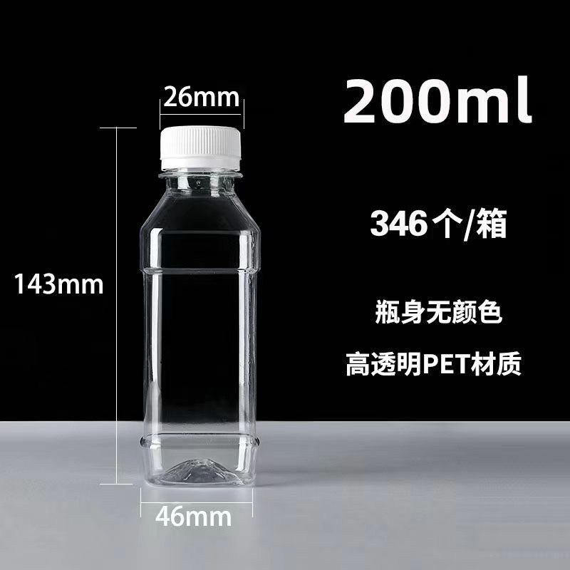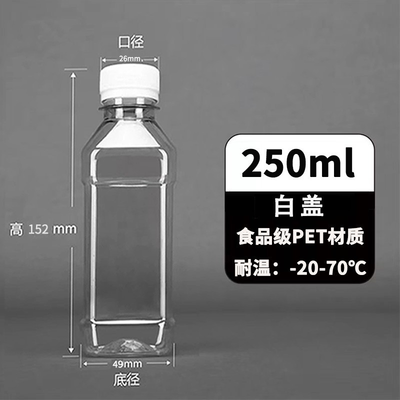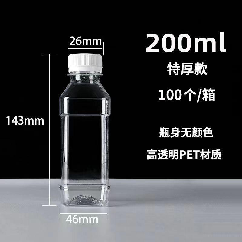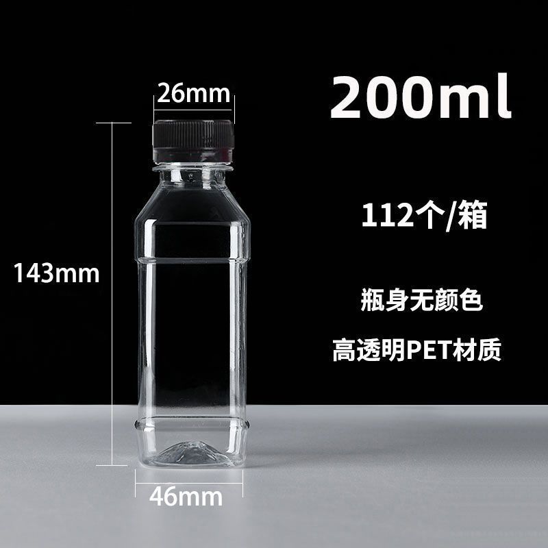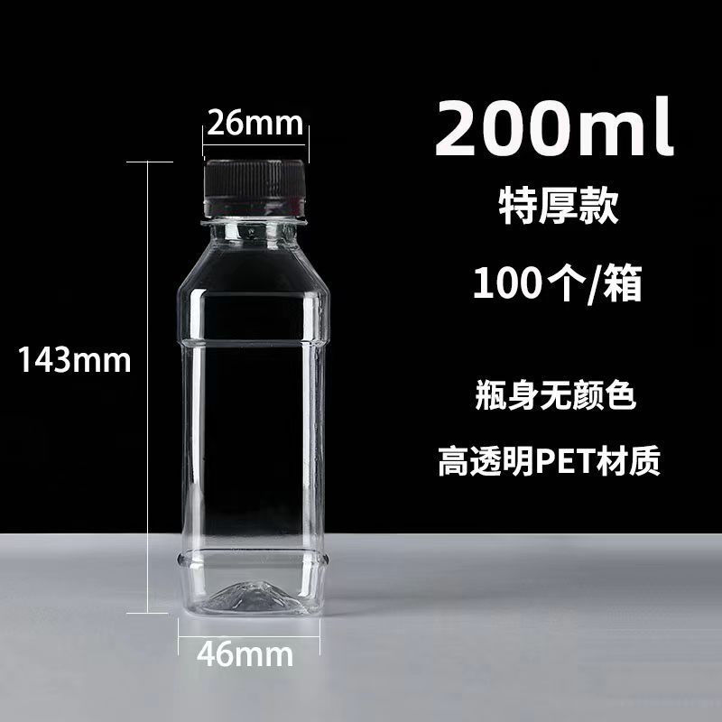 250ml 투명 플라스틱 병 빈 병 애완 동물 두꺼운 일회용 미네랄 워터 와인 병 사각형 병 도매스토어 가기