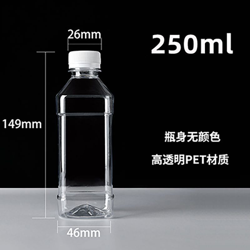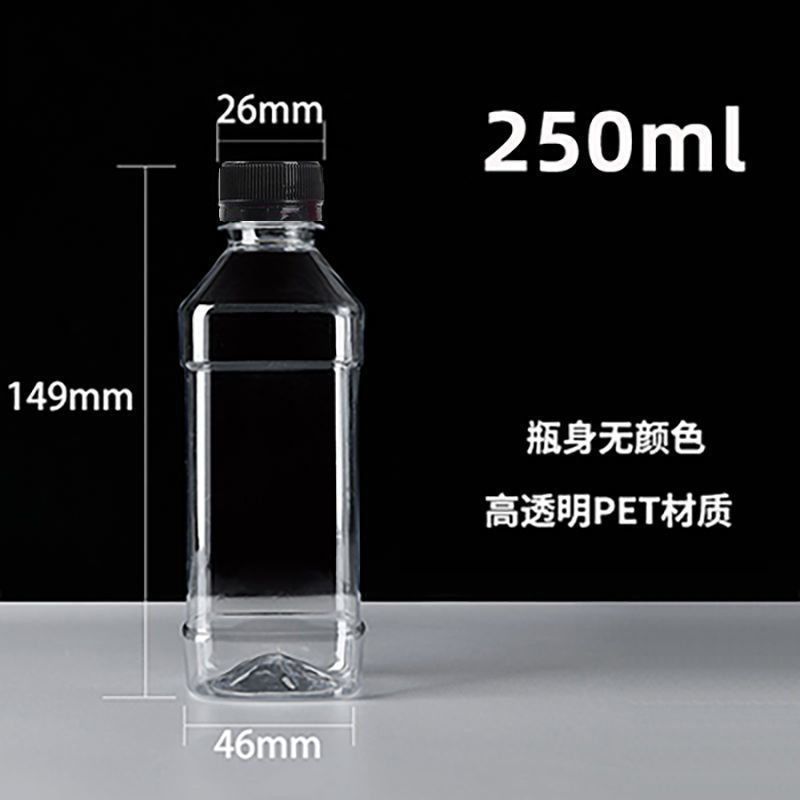 250ml 투명 플라스틱 병 빈 병 애완 동물 두꺼운 일회용 미네랄 워터 와인 병 사각형 병 도매