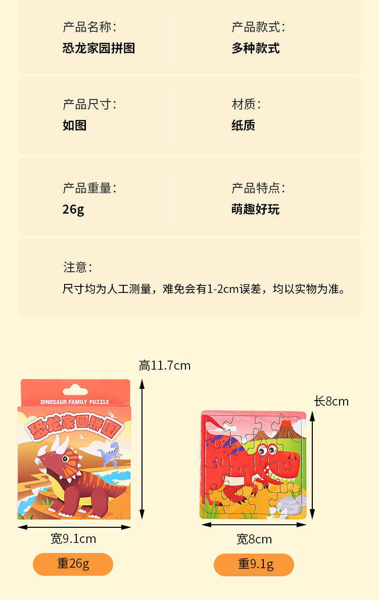 크리 에이 티브 박스형 퍼즐 만화 공룡 홈 미니 퍼즐 노점 장난감 어린이 학생 유치원 작은 선물