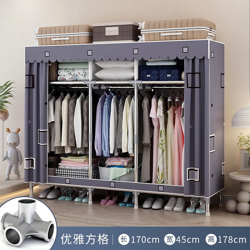 가정용 침실을 위한 간단한 옷장, 조립식 강철 파이프, 두껍고 튼튼하며 내구성이 뛰어난 천 옷장, 임대실 강철 프레임 캐비닛