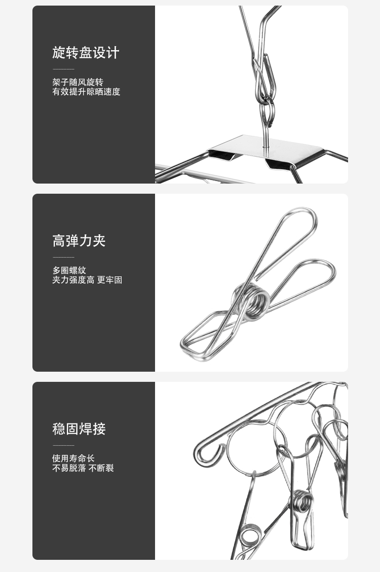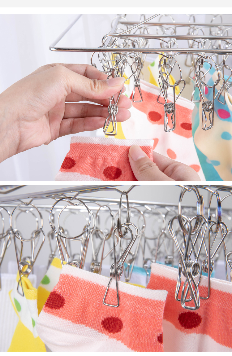 양말, 사각 속옷, 아기 옷걸이, 후크, 가정용 다기능 건조대를 건조하기 위한 스테인레스 스틸 옷걸이 멀티 클립스토어 가기