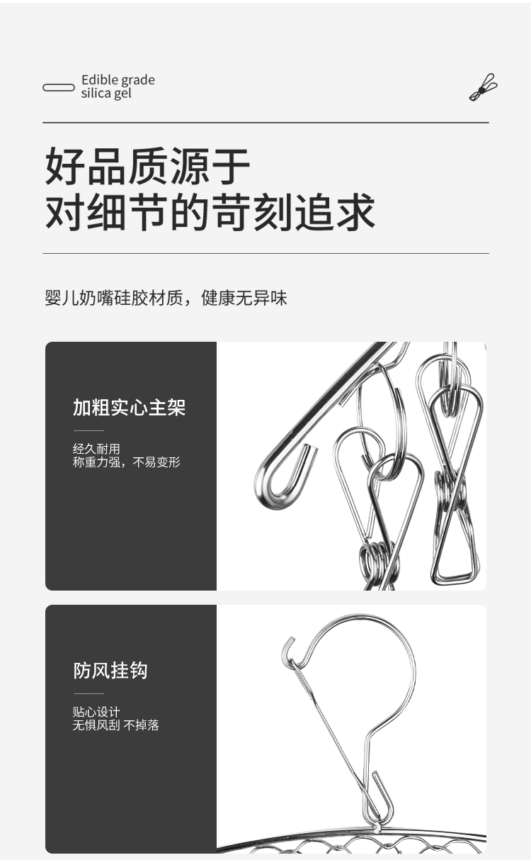 양말, 사각 속옷, 아기 옷걸이, 후크, 가정용 다기능 건조대를 건조하기 위한 스테인레스 스틸 옷걸이 멀티 클립