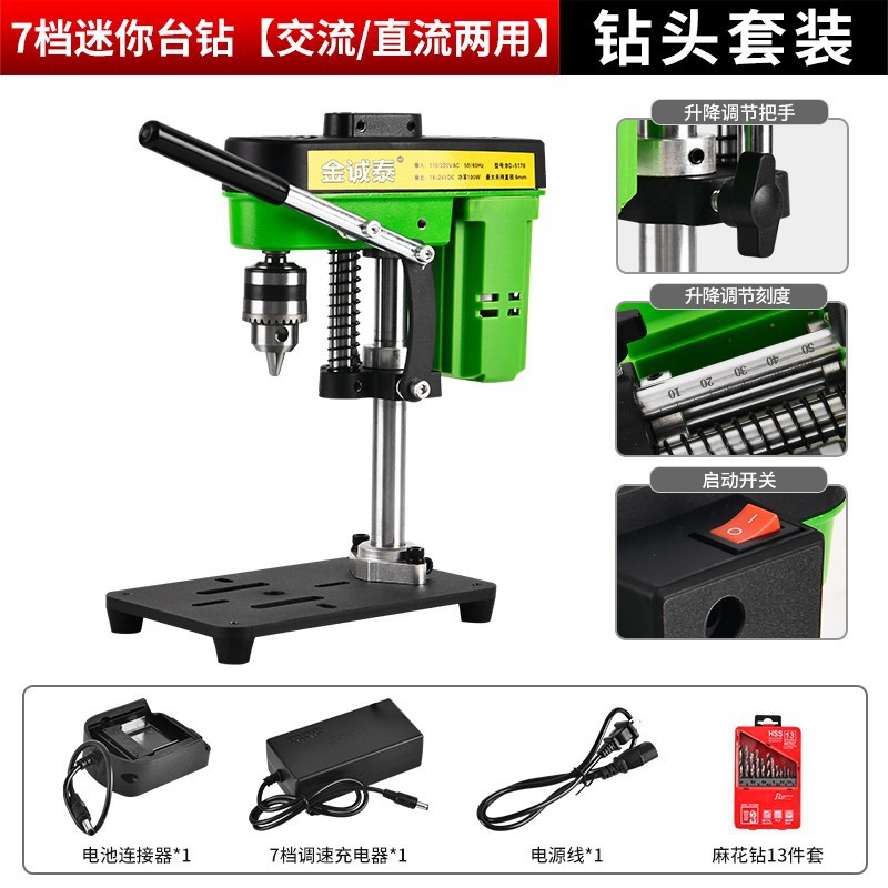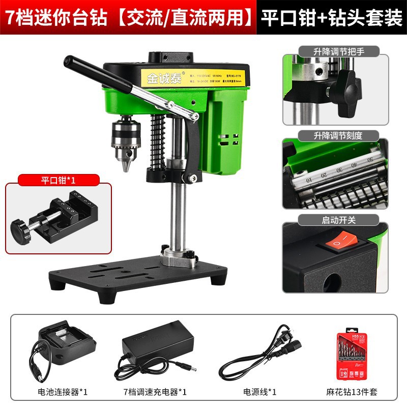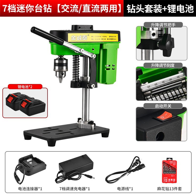 • 7단 미니 벤치 드릴 + 블랙 플라이어 + 철 상자 드릴 비트 + 배터리 2개