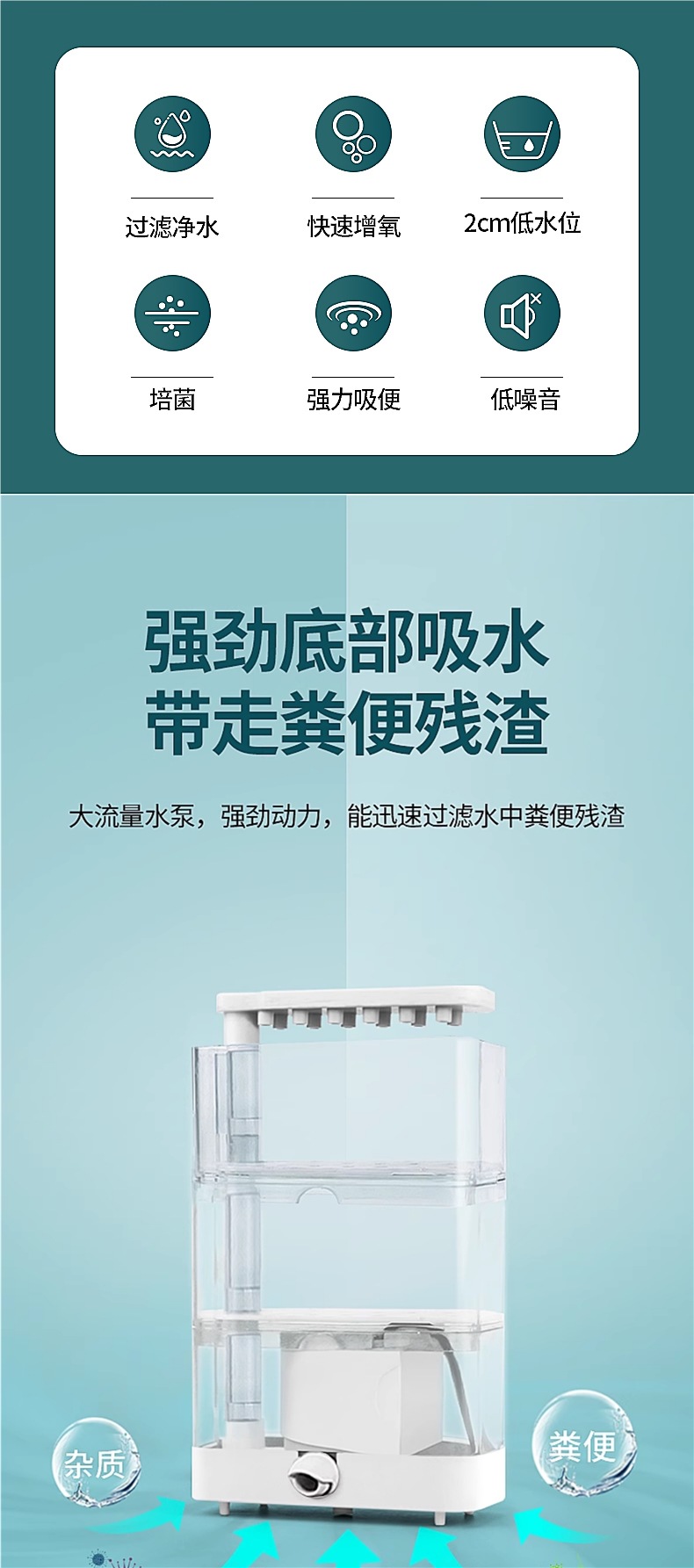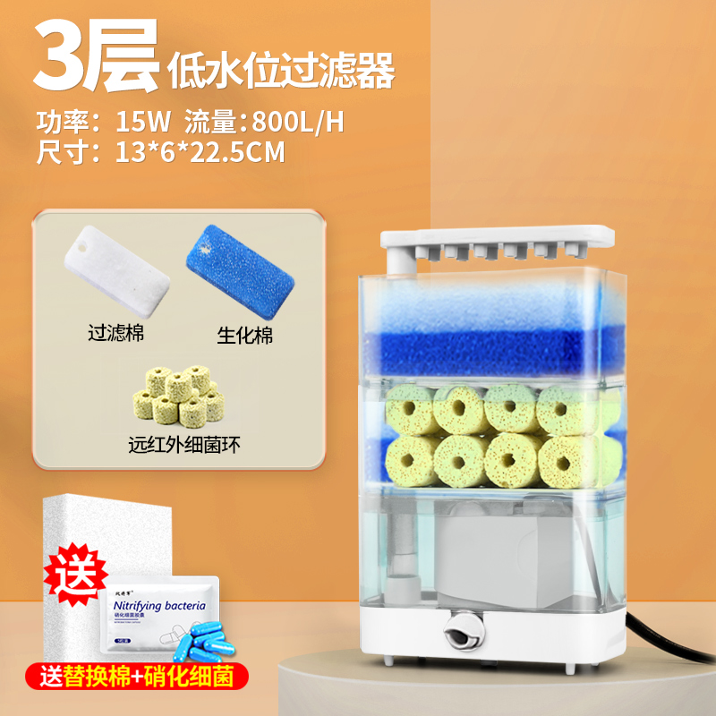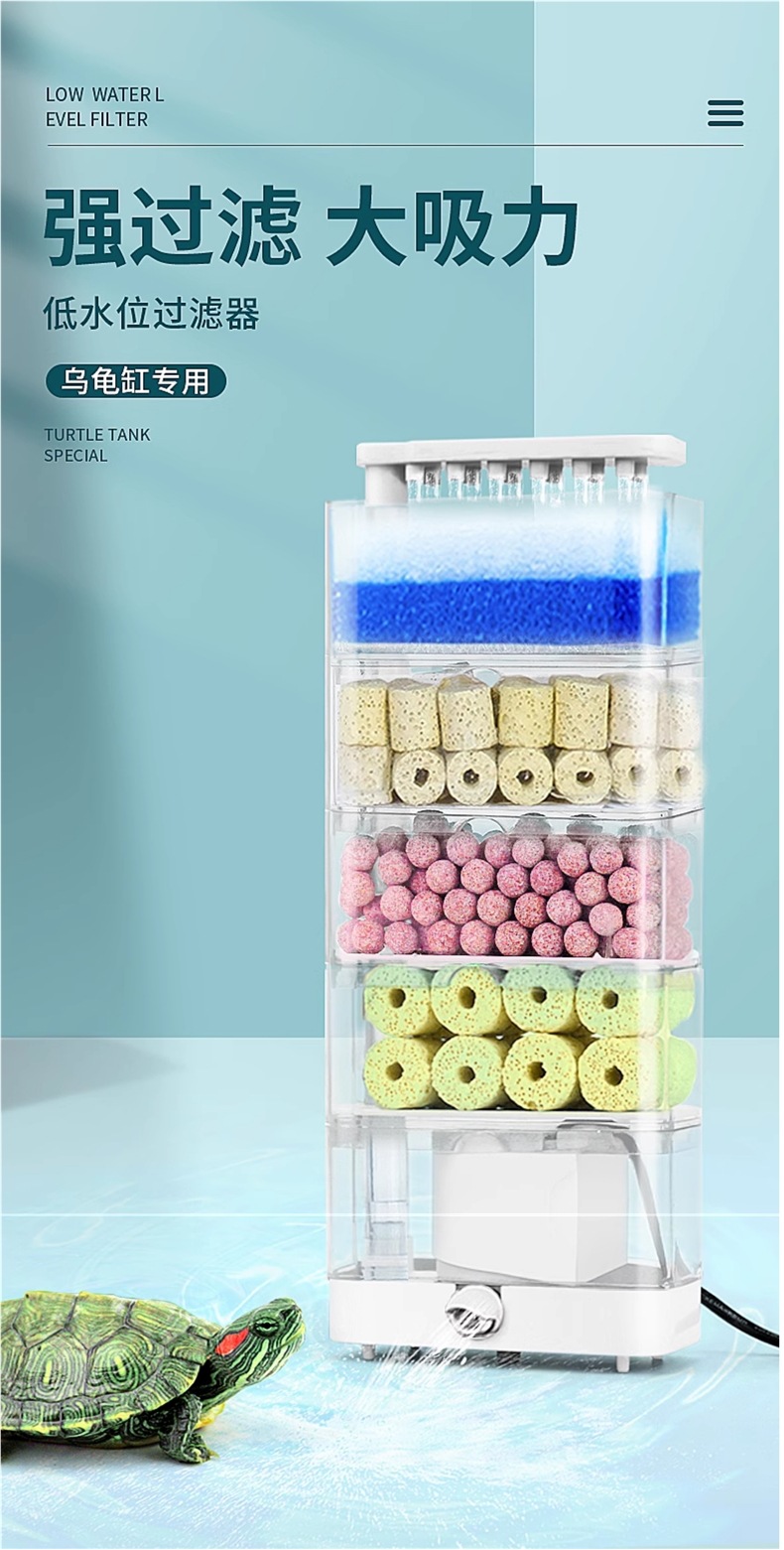 거북이 필터 수조 저수위 순환 3-in-1 필터 박스 드립 펌프 소형 버킷 흡입 거북이 탱크