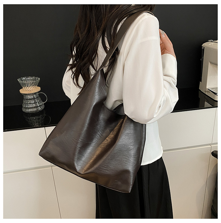 올해 여성을 위한 인기 대용량 가방 2025 봄 신작 숄더백 복고풍 단순 통근 질감 토트 백스토어 가기