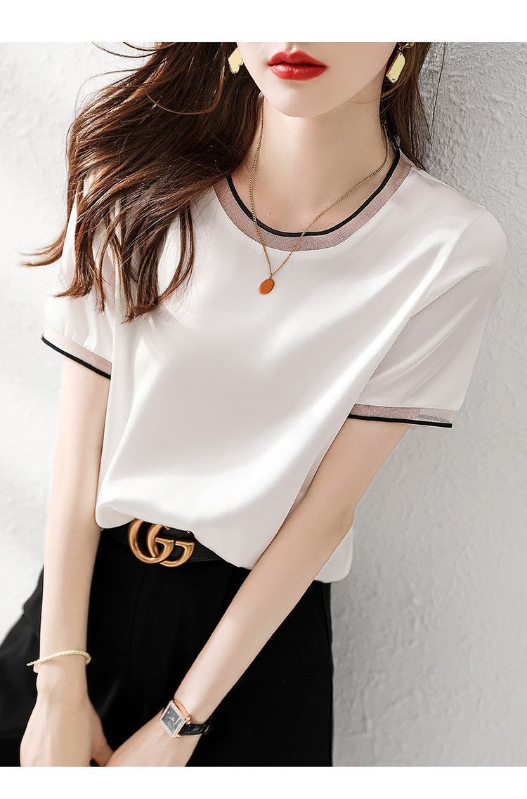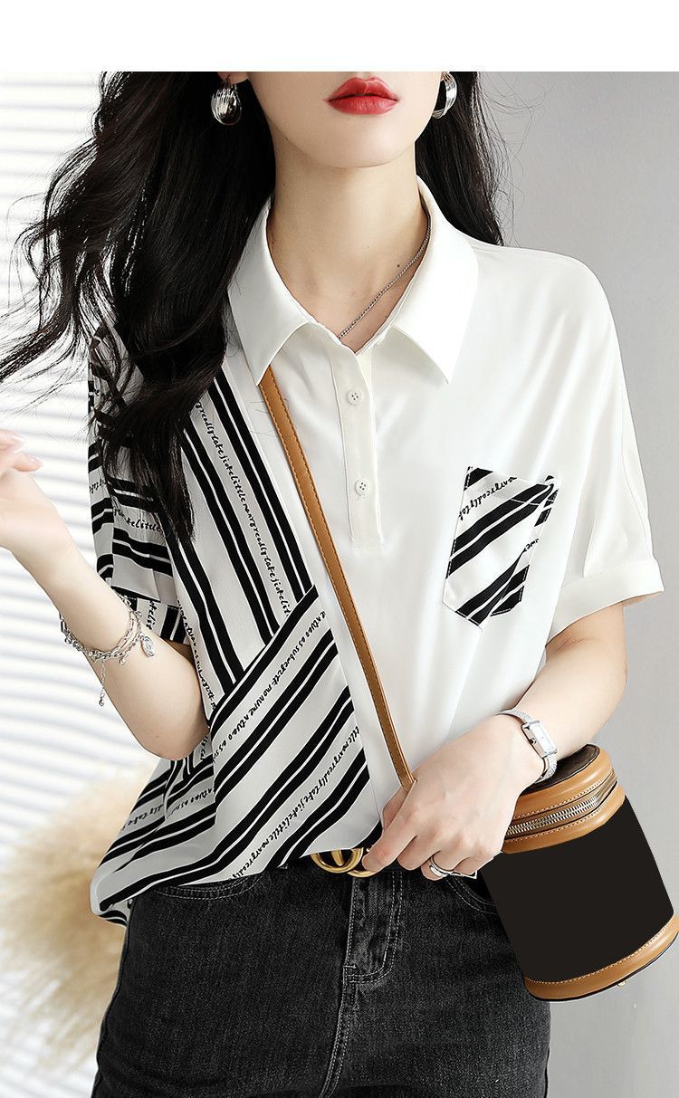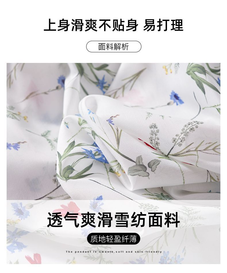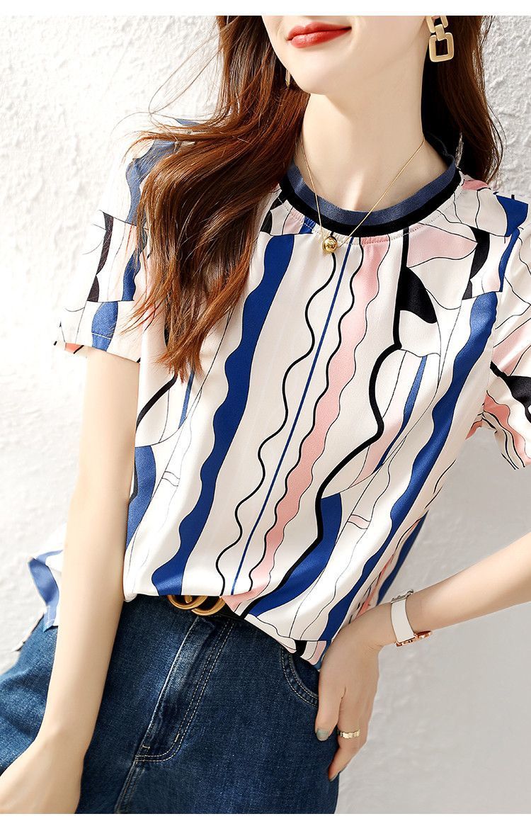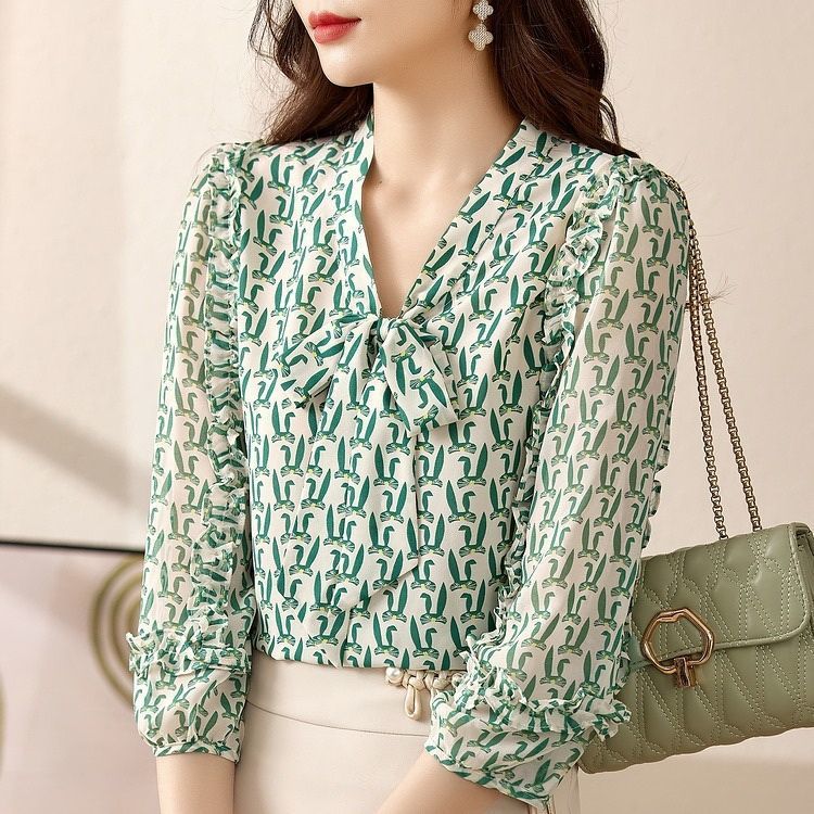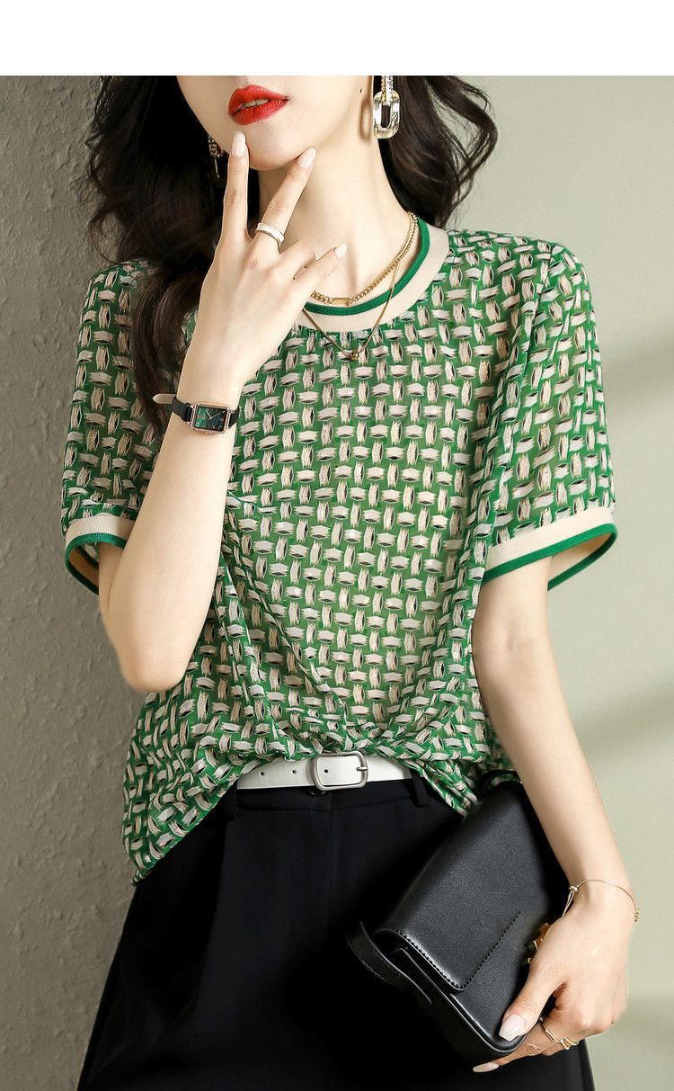 여름 여성용 쉬폰 셔츠, 7부 소매 디자인, 틈새 루즈, 상큼한 프린트, 배를 커버하고 슬리밍 여성용 탑스토어 가기