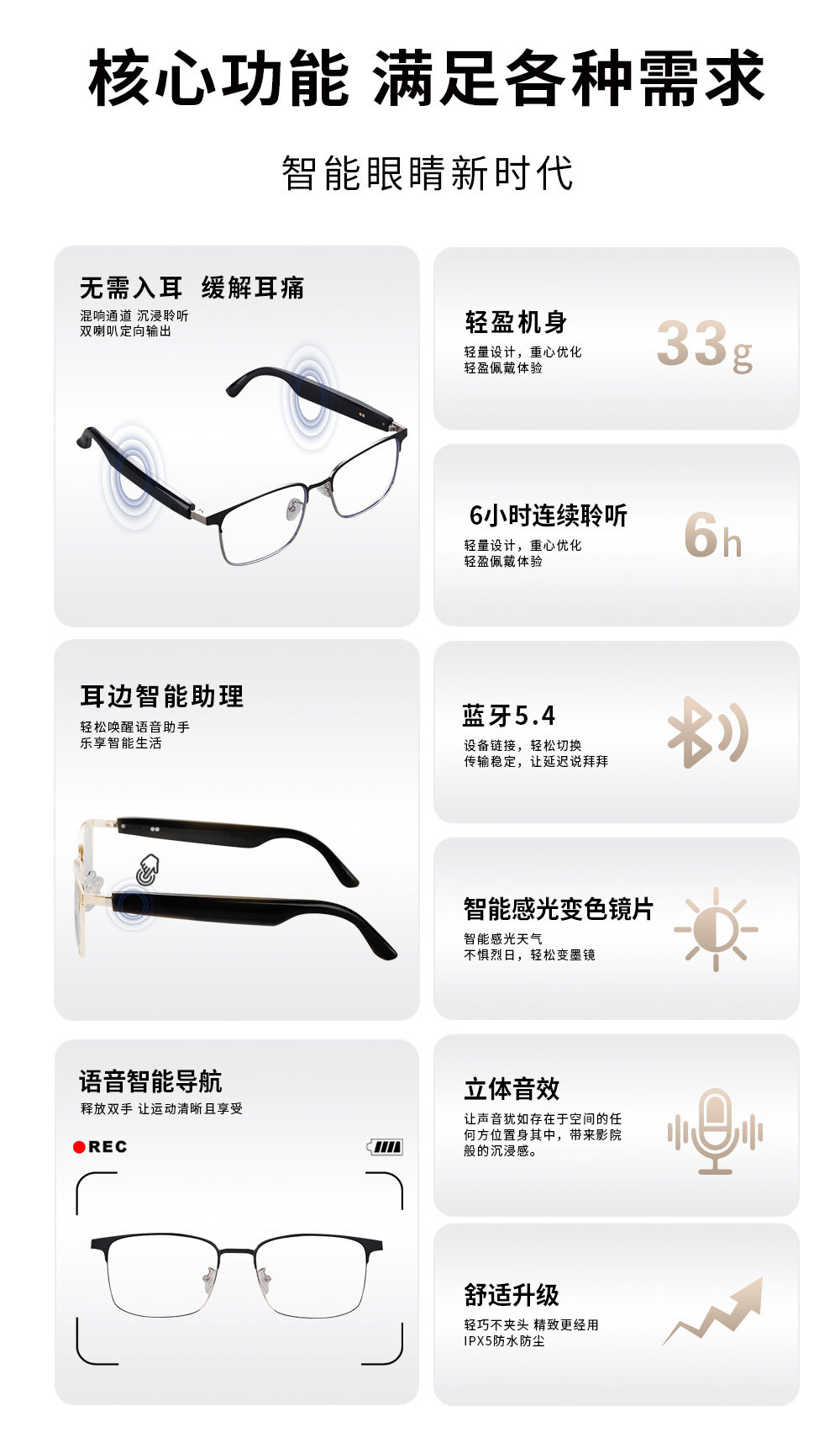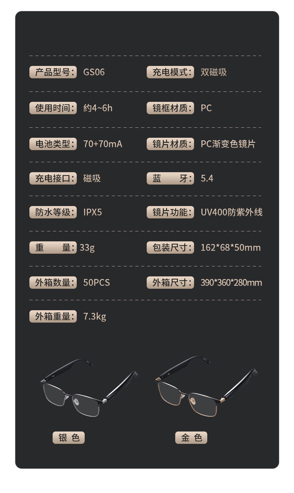 국경 간 새로운 GS06 스마트 안경 무선 헤드셋 안경 오픈형 블루투스 통화 태양 패션 안경