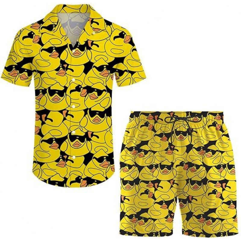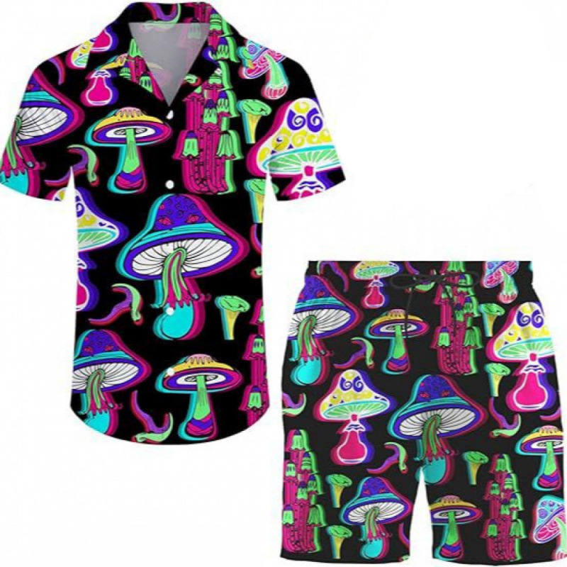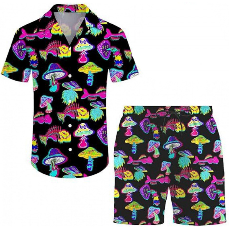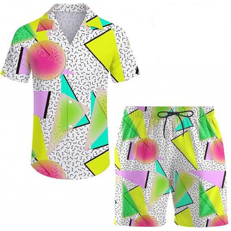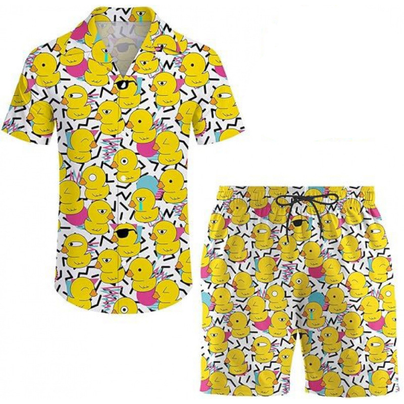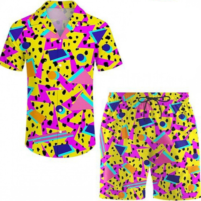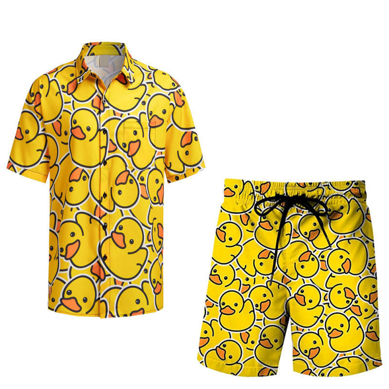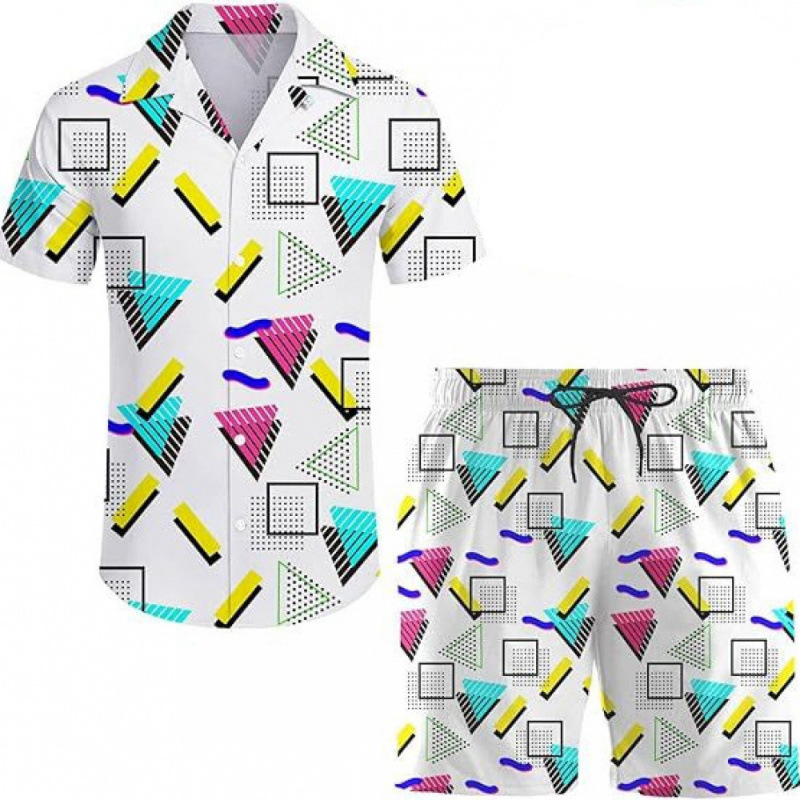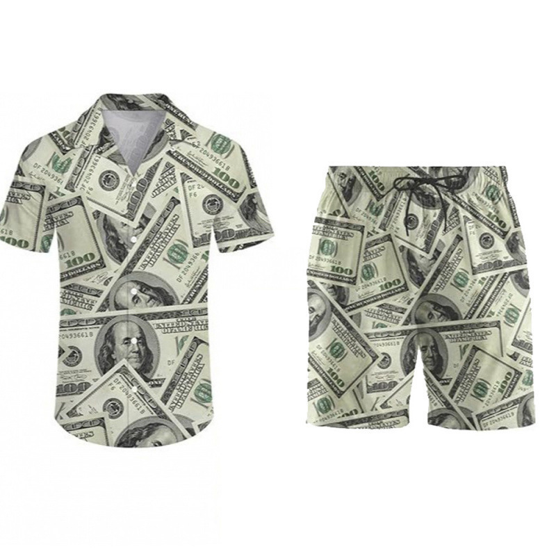 여름 국경 간 새로운 남성 캐주얼 비치 스타일 디지털 인쇄 반팔 투피스 남성 반팔 셔츠 세트스토어 가기