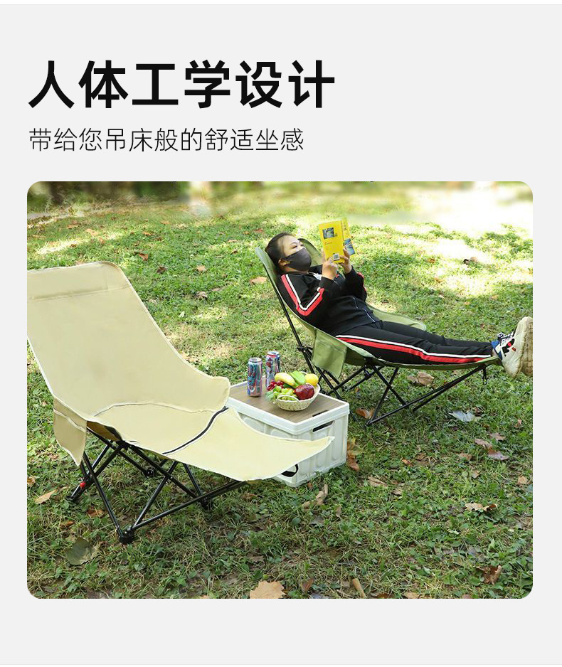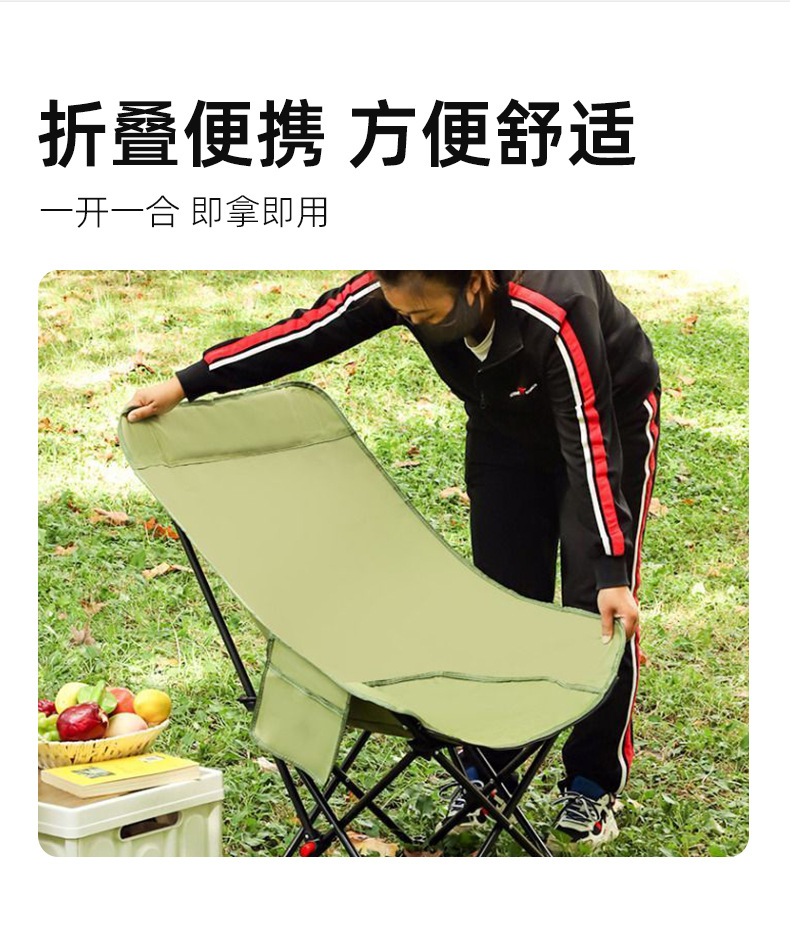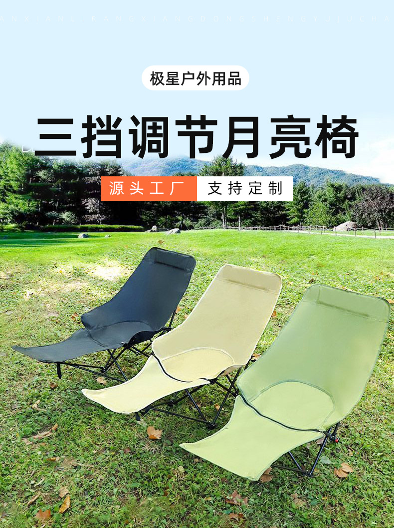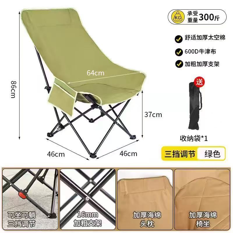 야외 접이식 의자 3단 조절 안락 의자 달 의자 캠핑 휴대용 접이식 의자 등받이 점심 휴식 해변 의자 가방