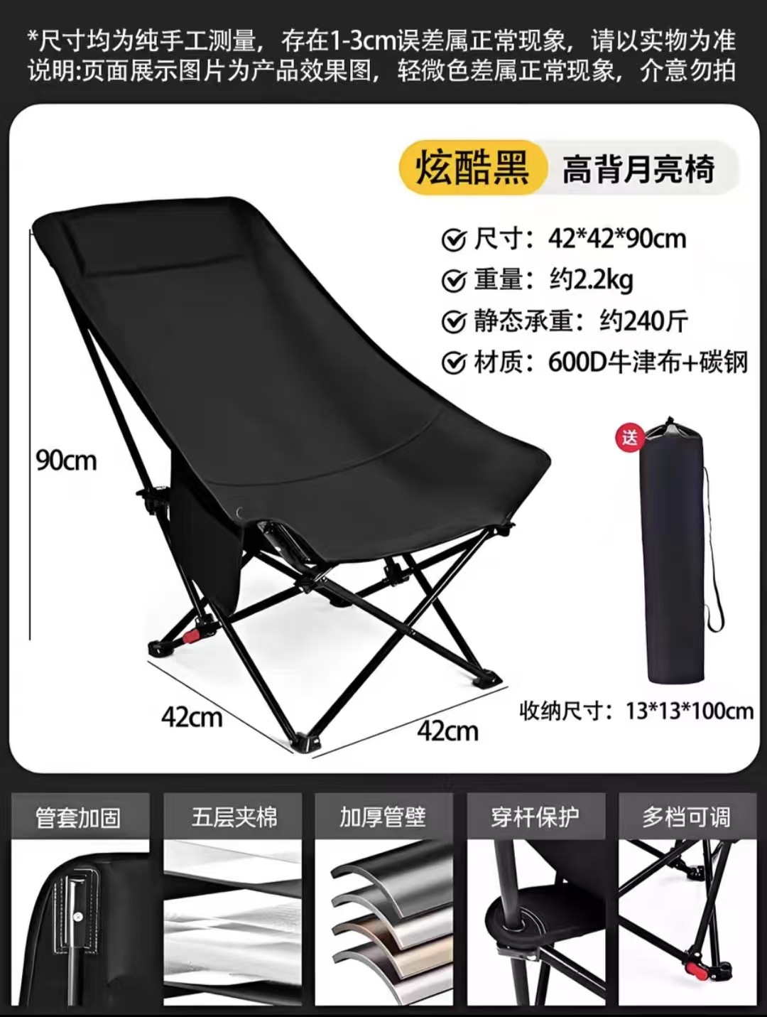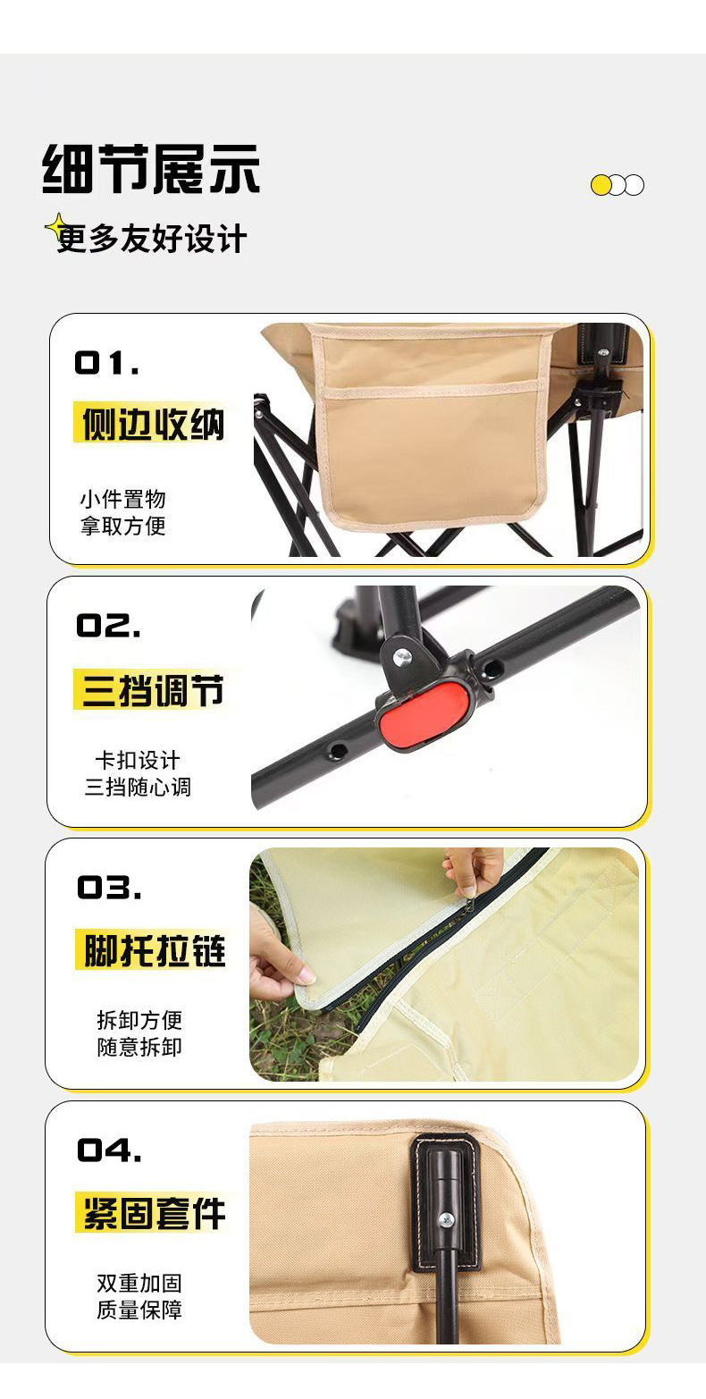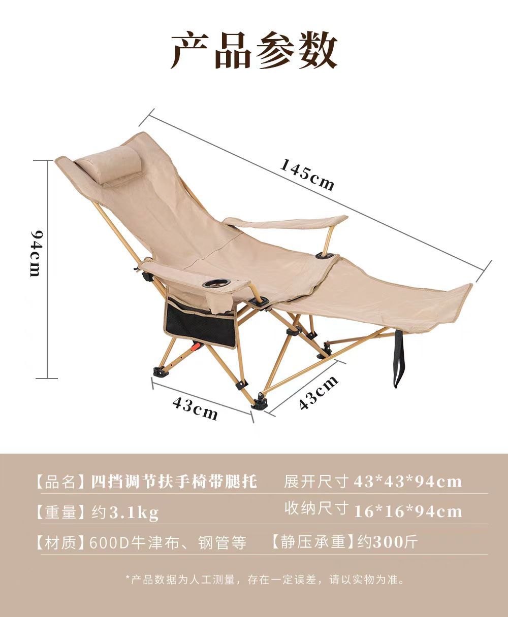 야외 접이식 의자 3단 조절 안락 의자 달 의자 캠핑 휴대용 접이식 의자 등받이 점심 휴식 해변 의자 가방