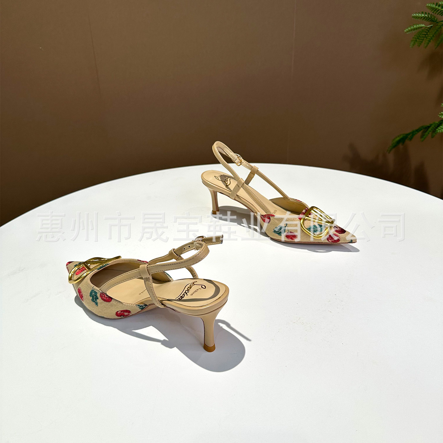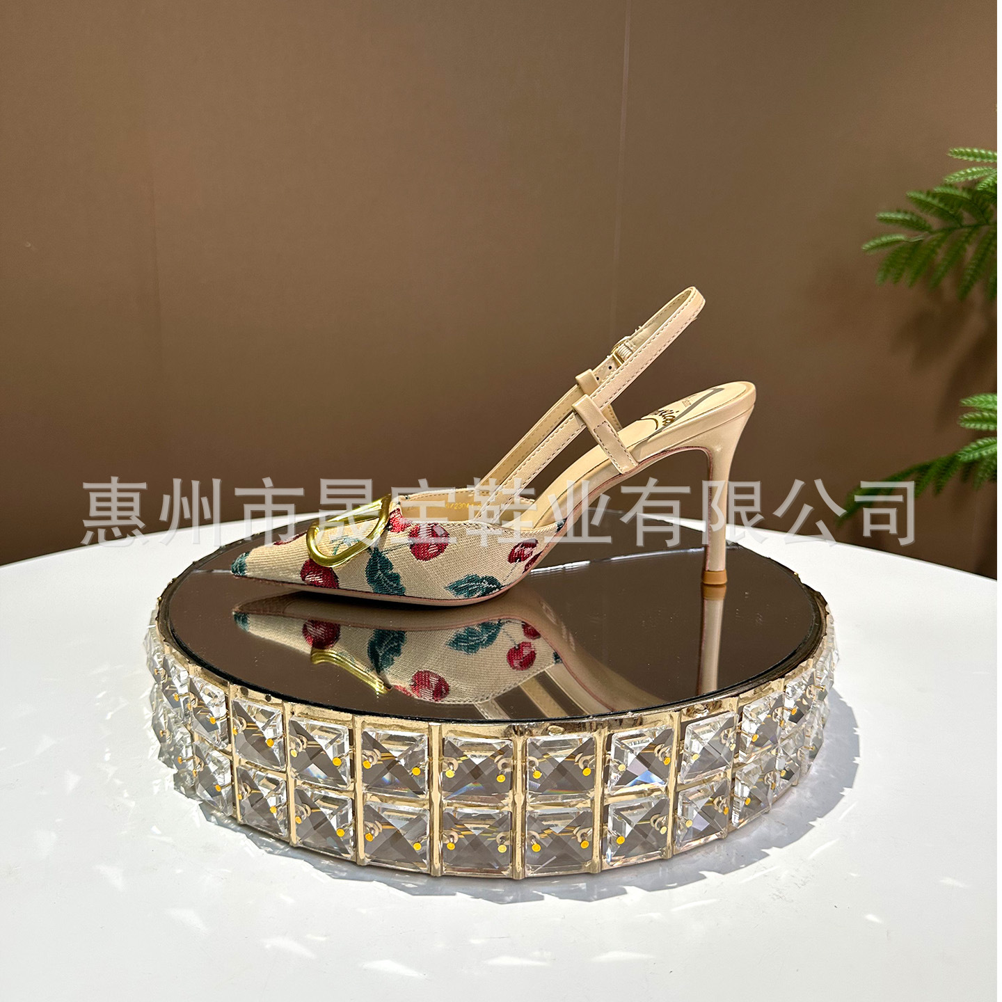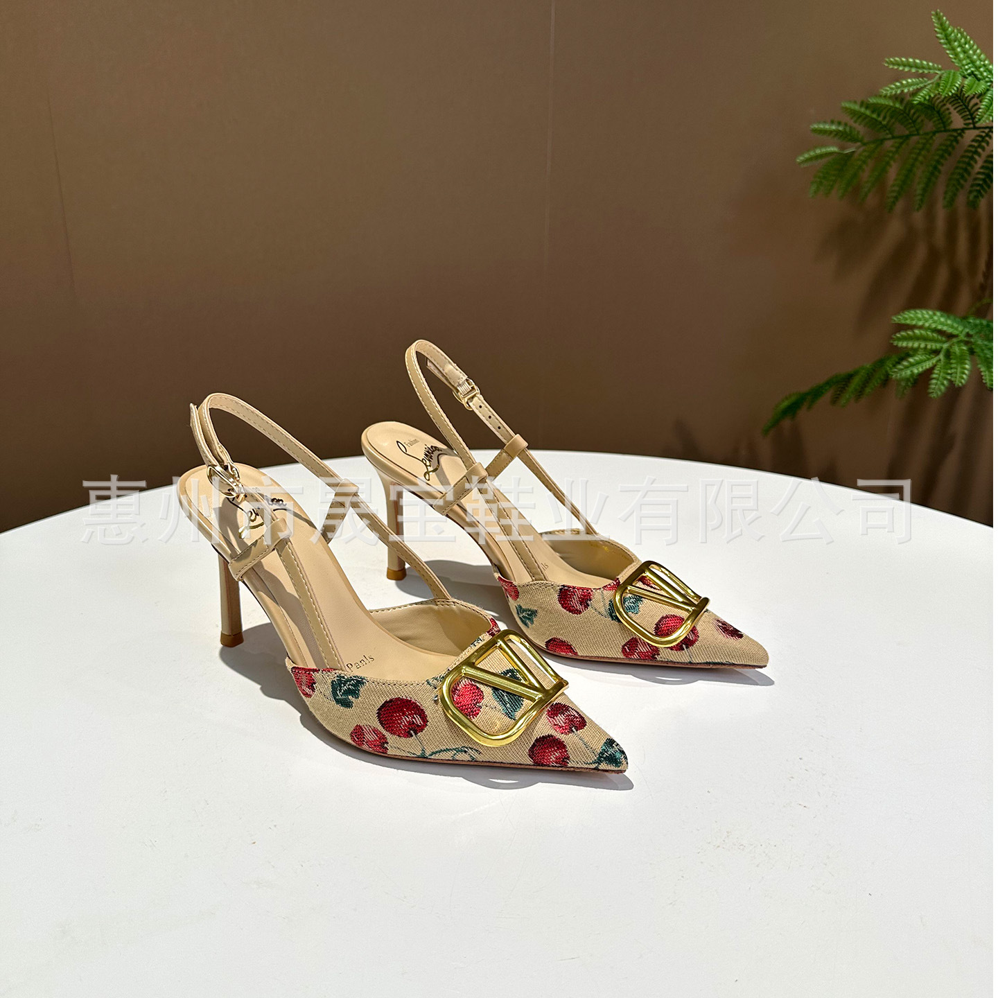 2025년 신형 포인티드 토 메탈 하이힐, 스틸레토 힐, 토백, 뒷끈, 여성스럽고 활용도 높은 체리 샌들, 요정 아우터스토어 가기