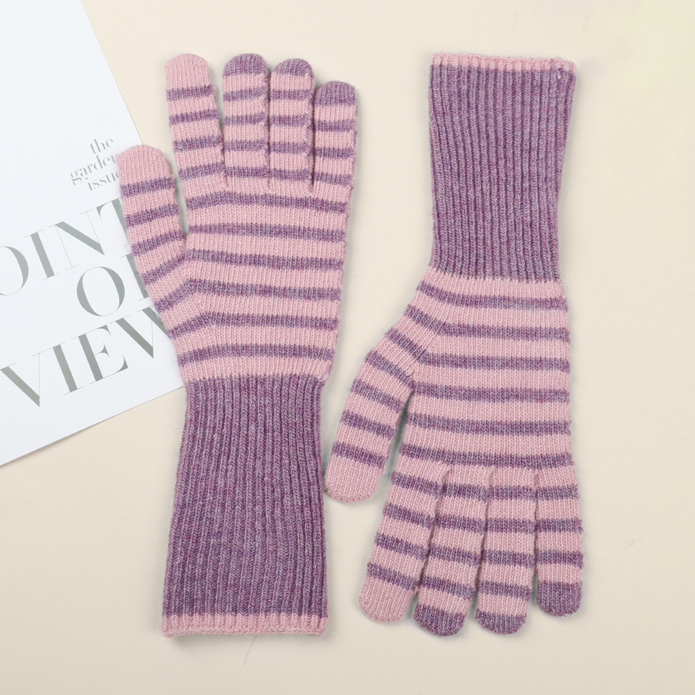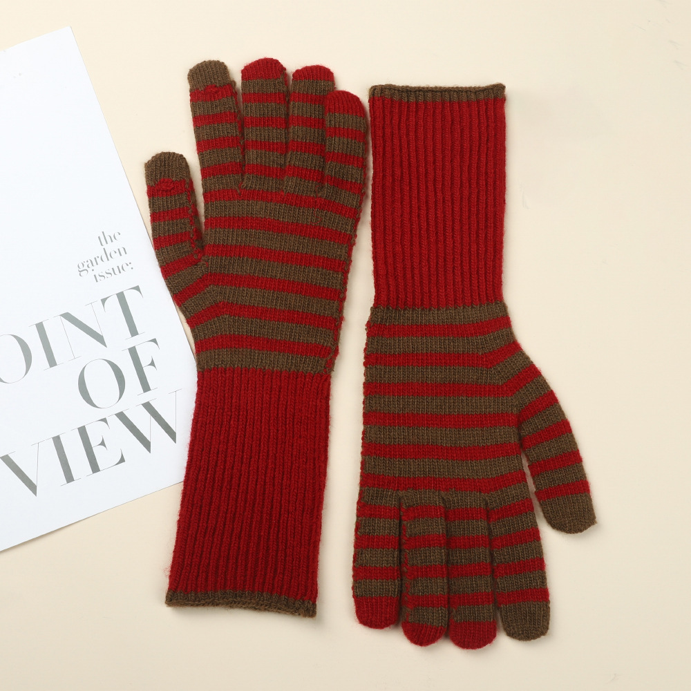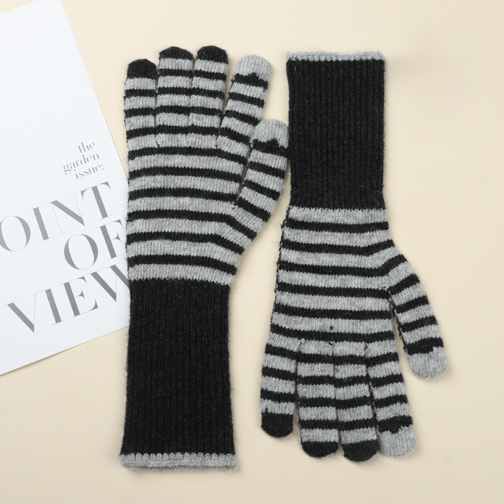 여성용 복고풍 줄무늬 울 니트 장갑, 한국식 다용도 다섯 손가락 성인용 장갑, 확장되고 두꺼워지고 따뜻한 사이클링 트렌드