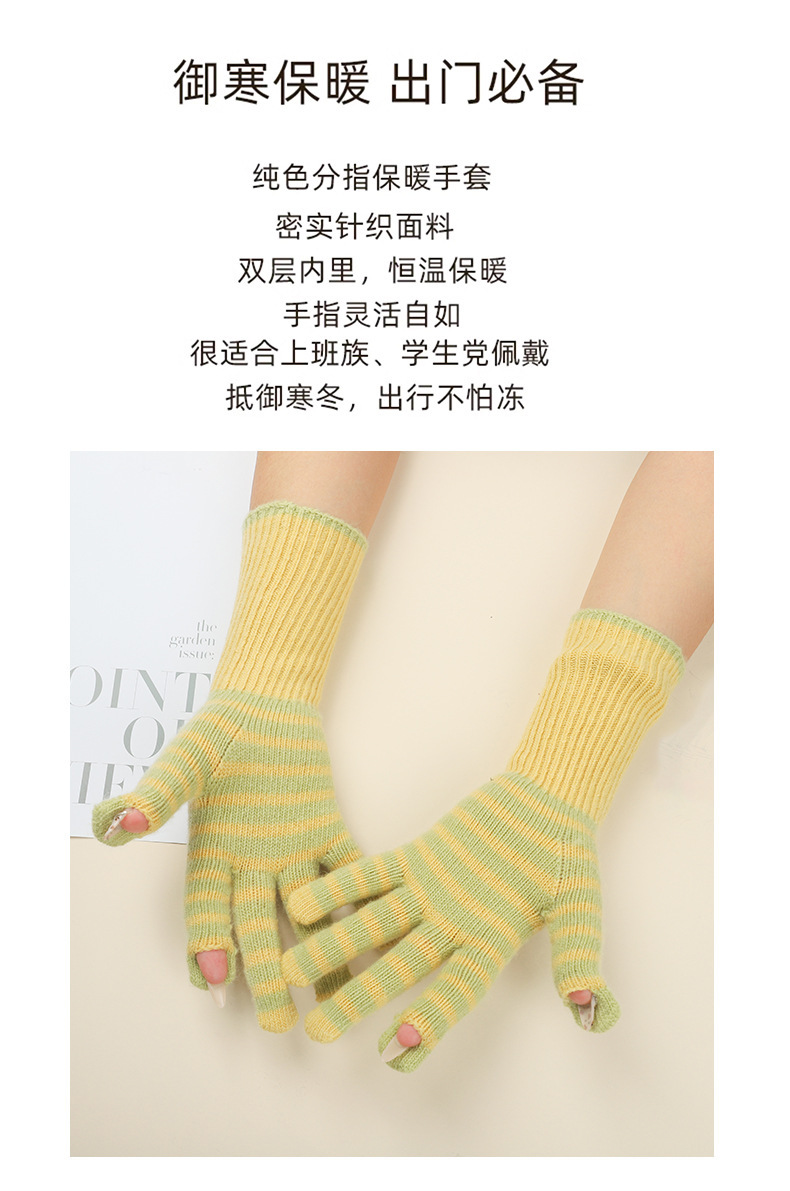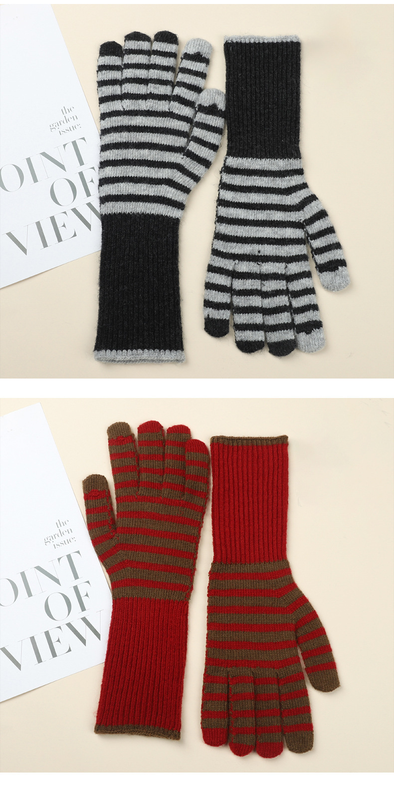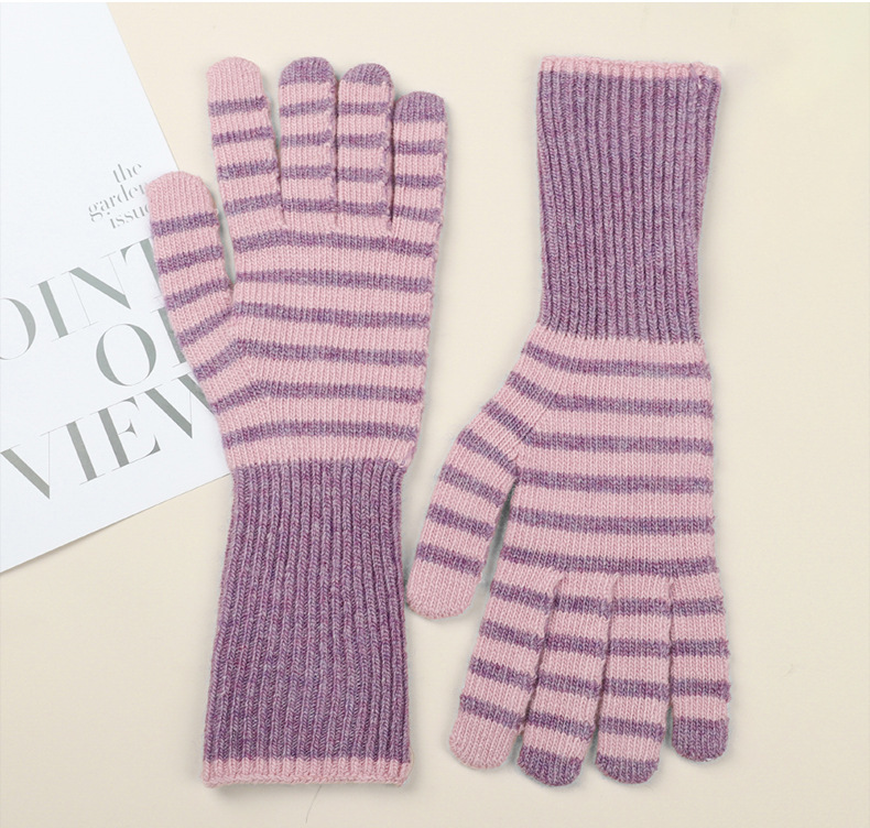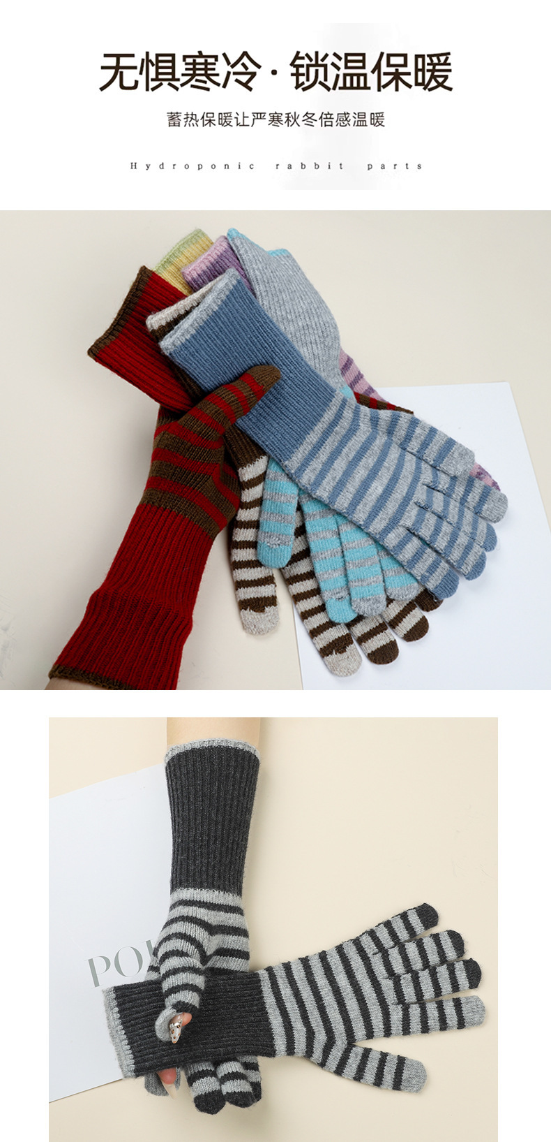 여성용 복고풍 줄무늬 울 니트 장갑, 한국식 다용도 다섯 손가락 성인용 장갑, 확장되고 두꺼워지고 따뜻한 사이클링 트렌드스토어 가기