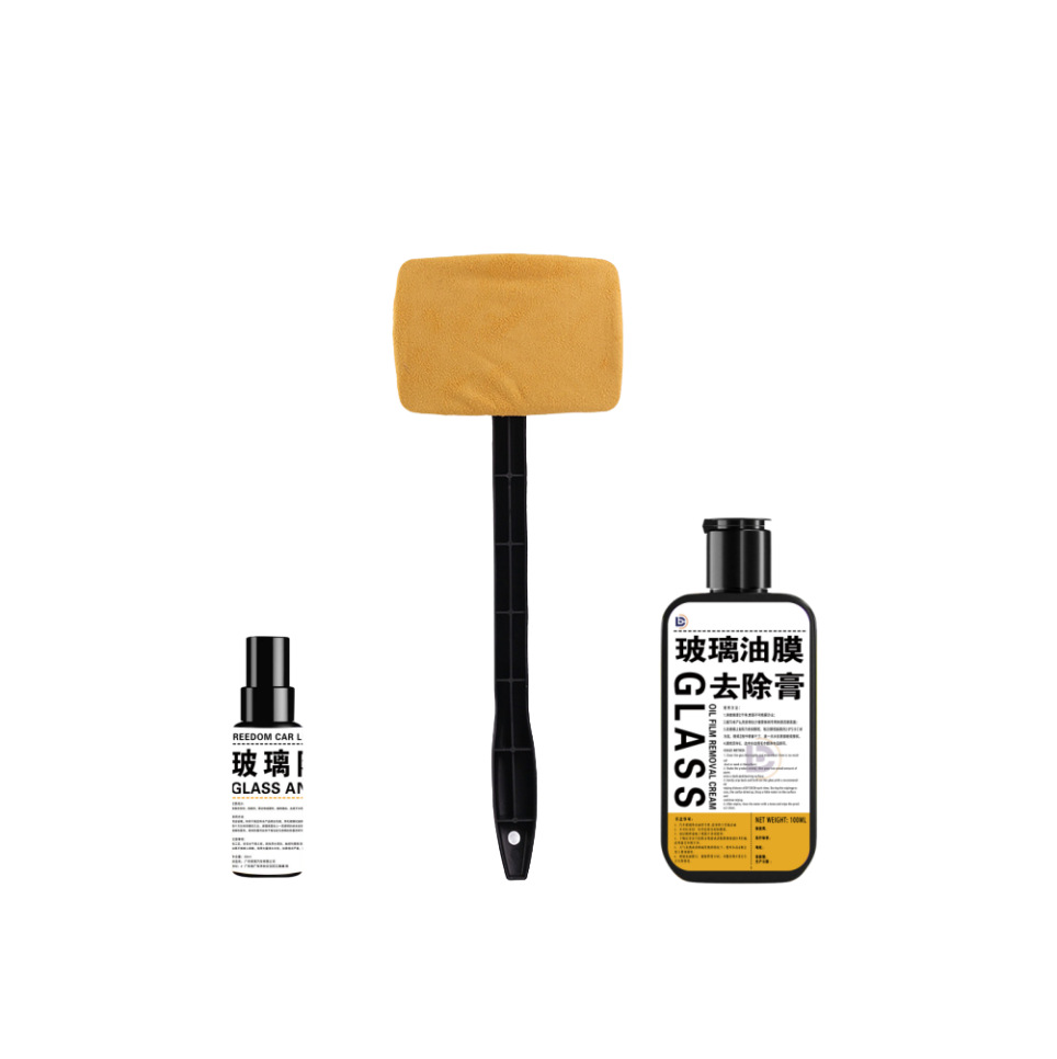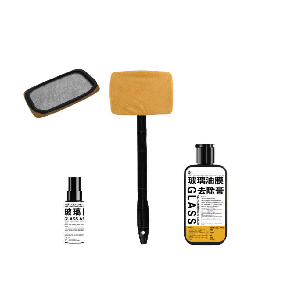 • 스웨이드 유리 브러쉬(브라운/그레이 랜덤 헤어) + 유리 김서림 방지제 + 유막 제거 페이스트