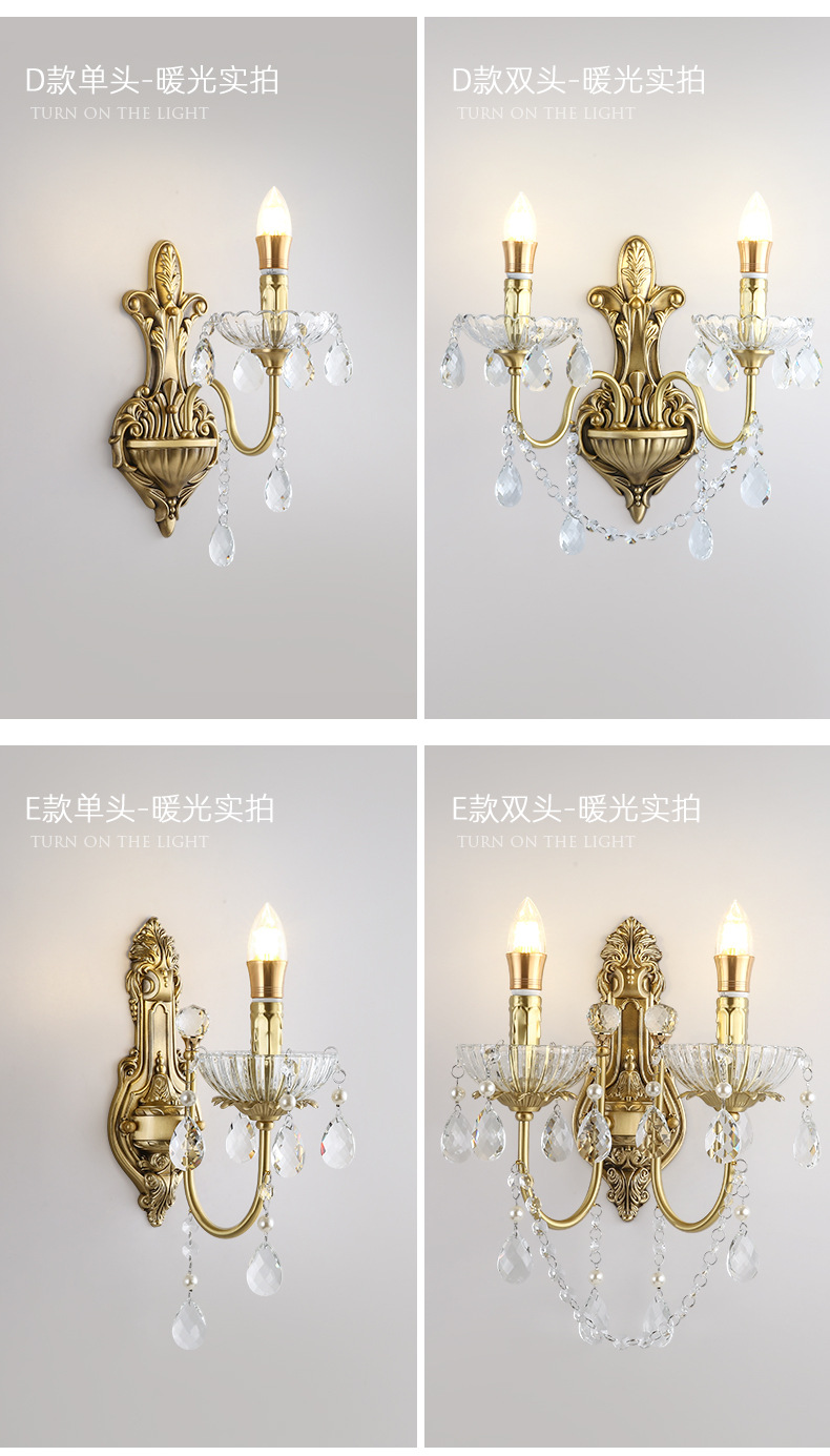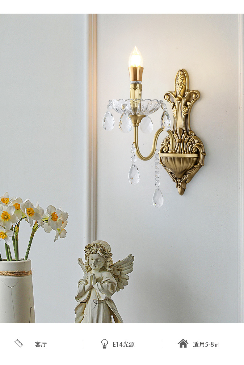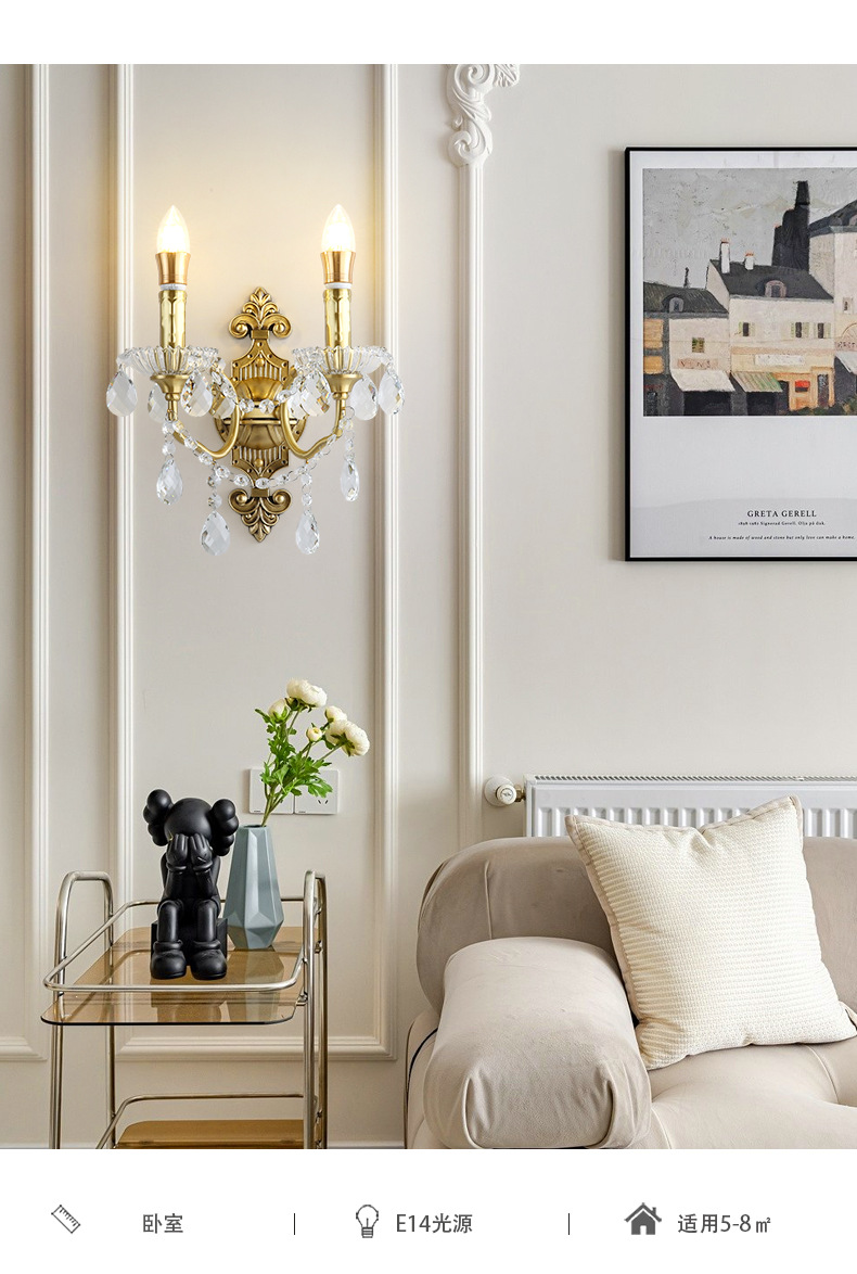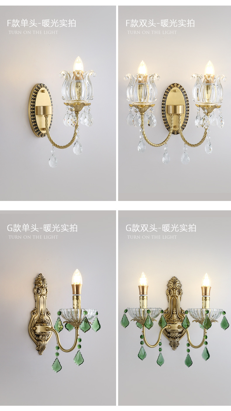 프랑스 복고풍 침실 머리맡 크리스탈 벽 램프 유럽 스타일의 거실 TV 배경 벽 램프 미국 전체 구리 왁스 벽 램프스토어 가기