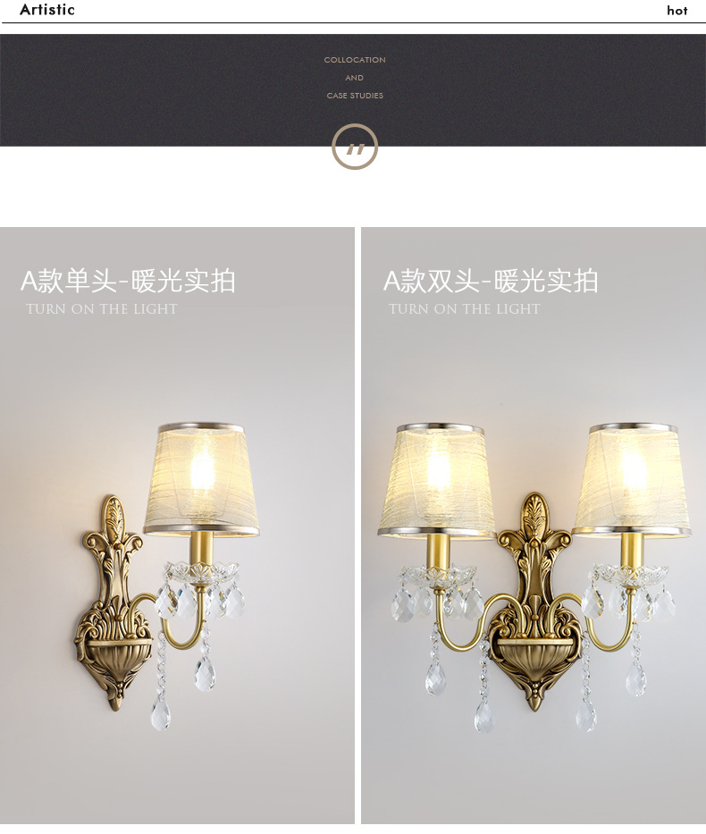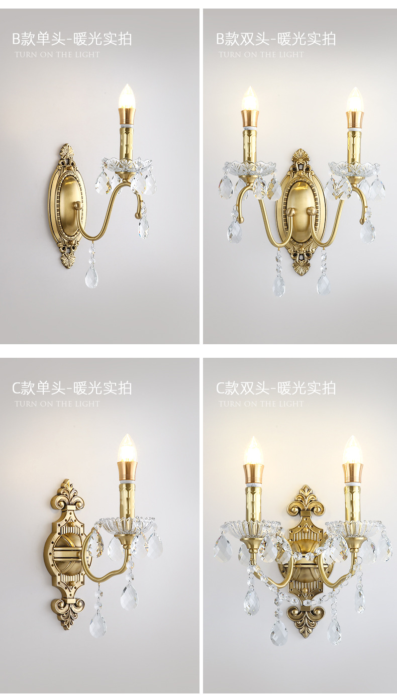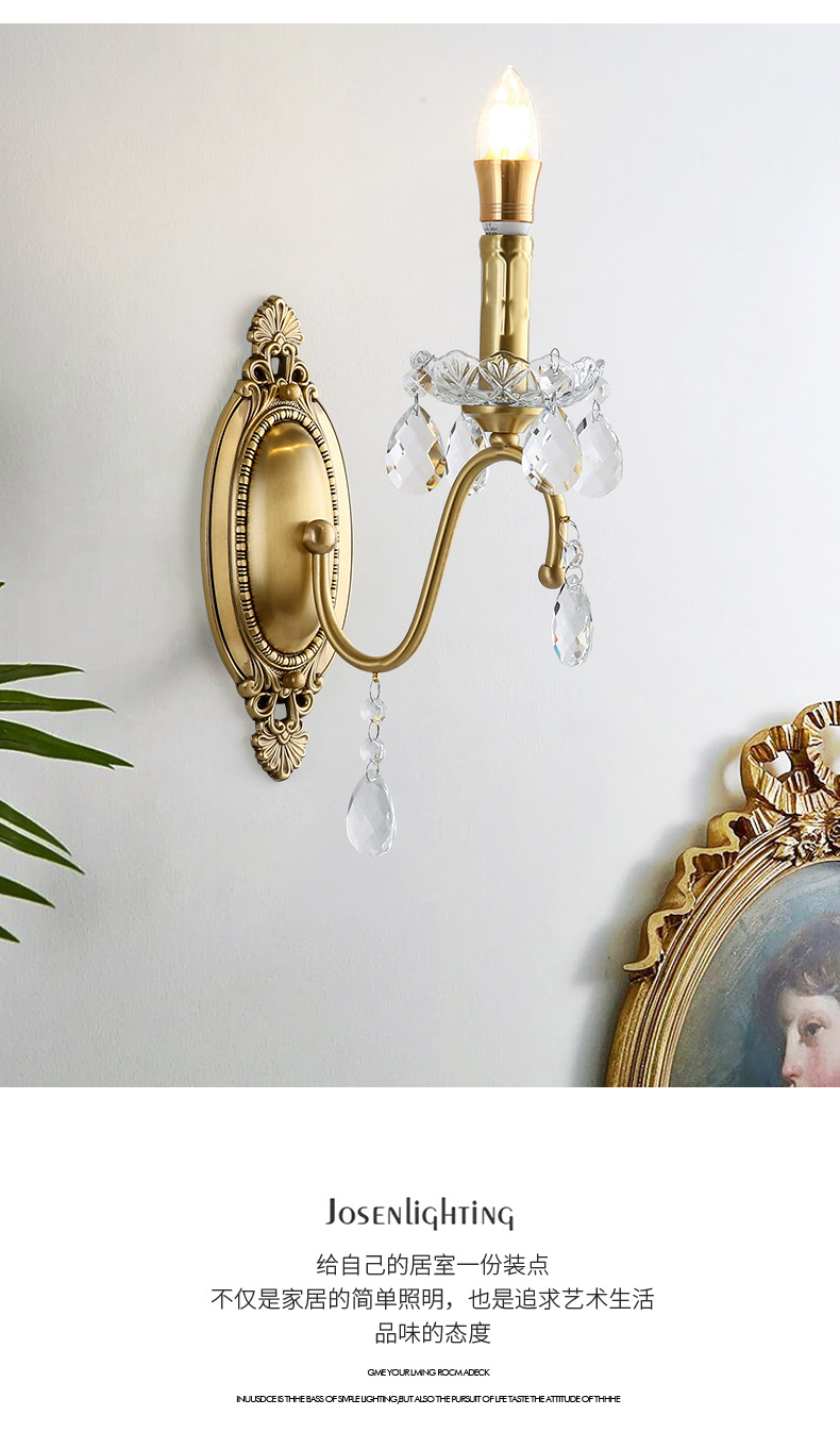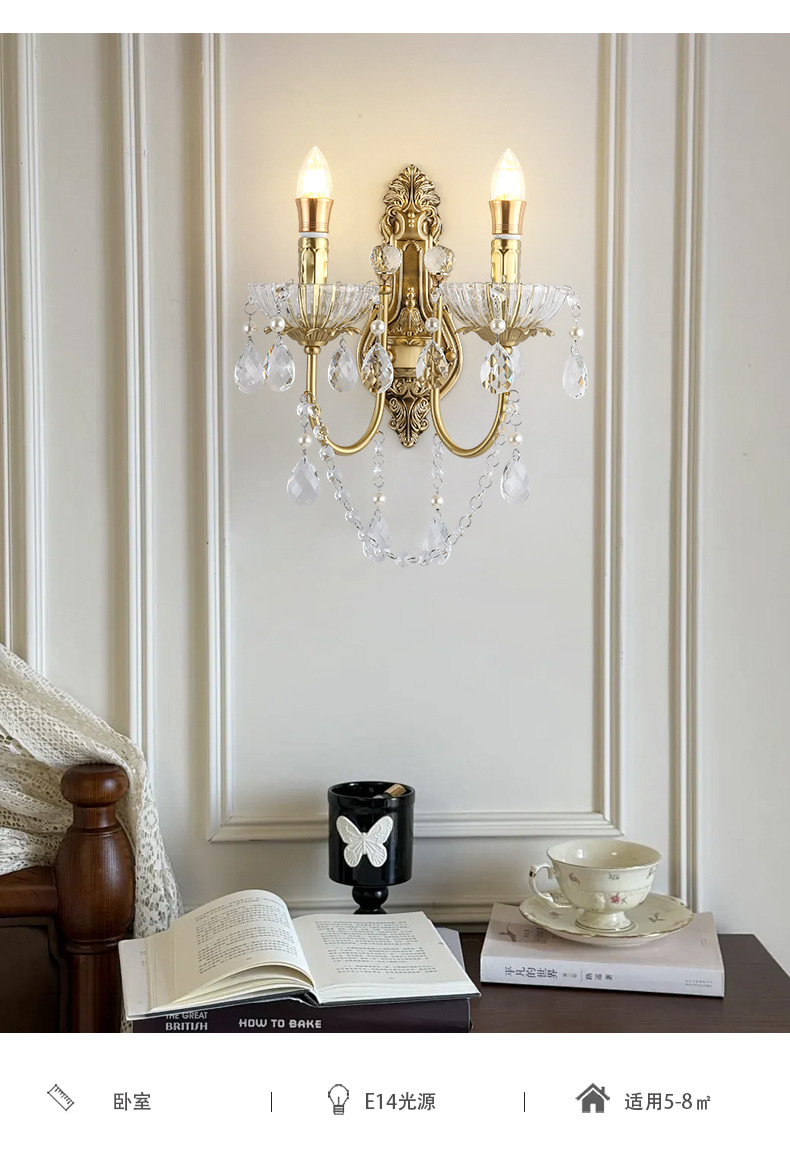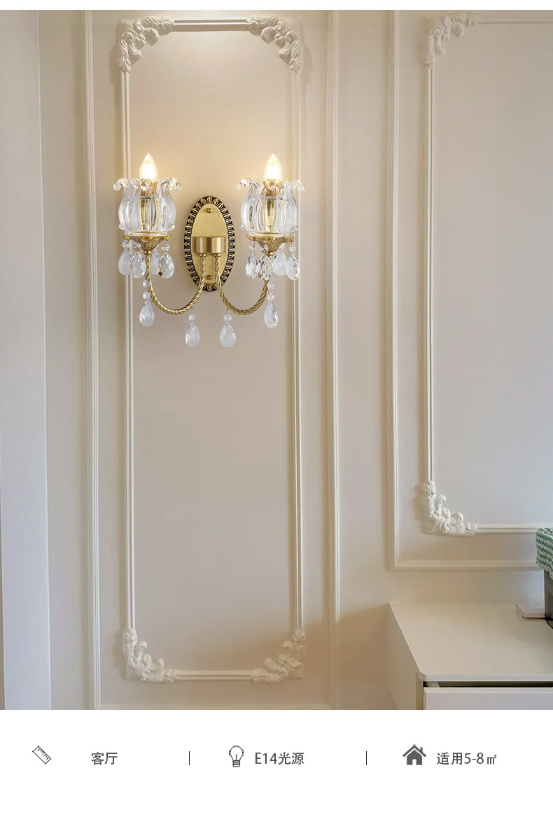 프랑스 복고풍 침실 머리맡 크리스탈 벽 램프 유럽 스타일의 거실 TV 배경 벽 램프 미국 전체 구리 왁스 벽 램프스토어 가기