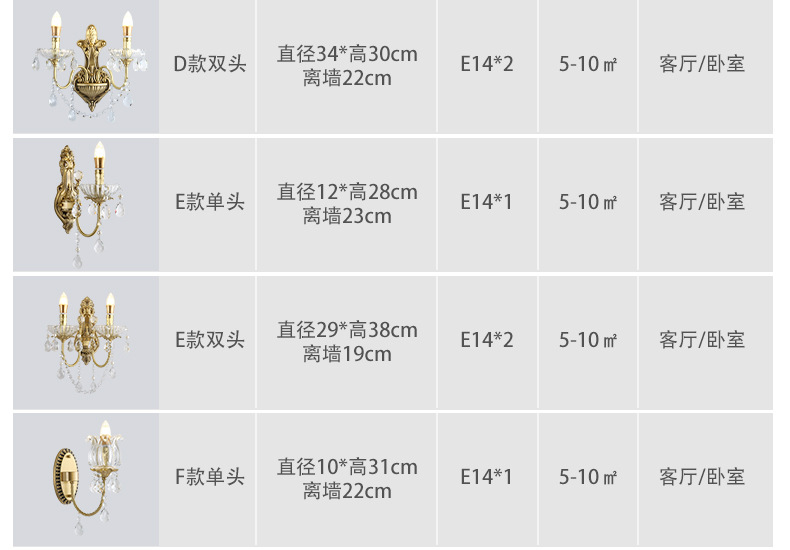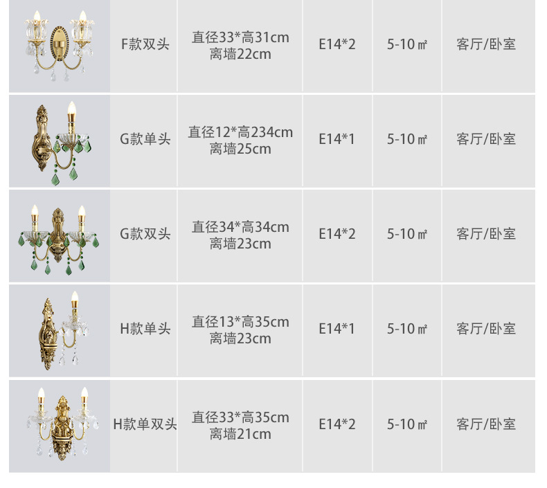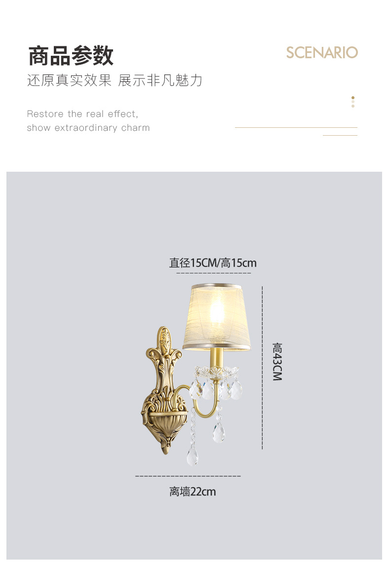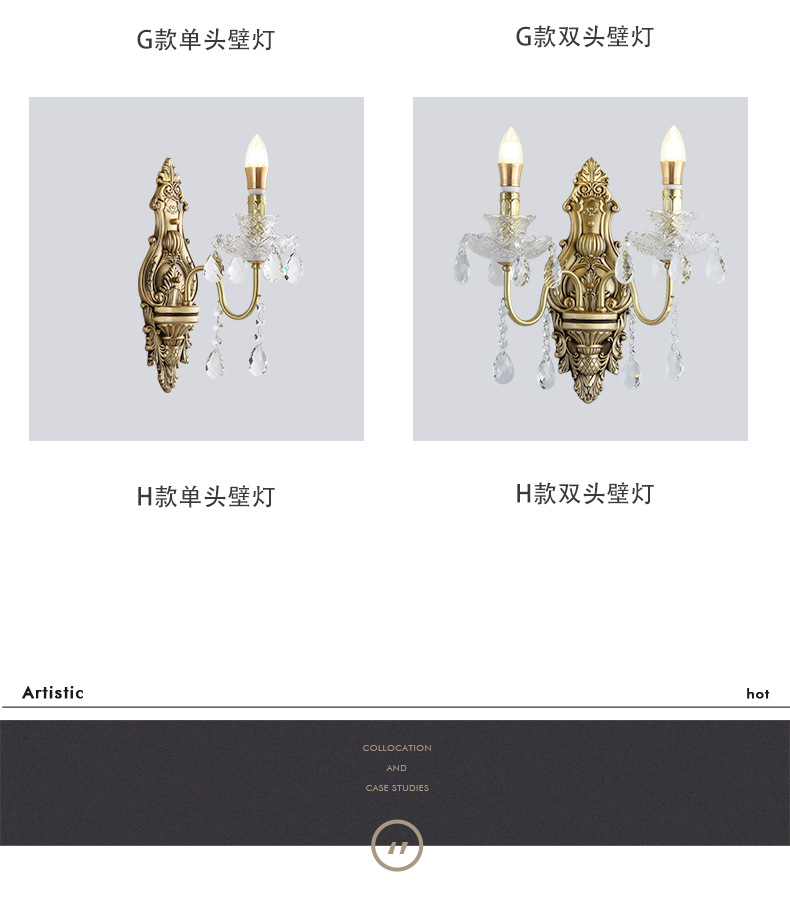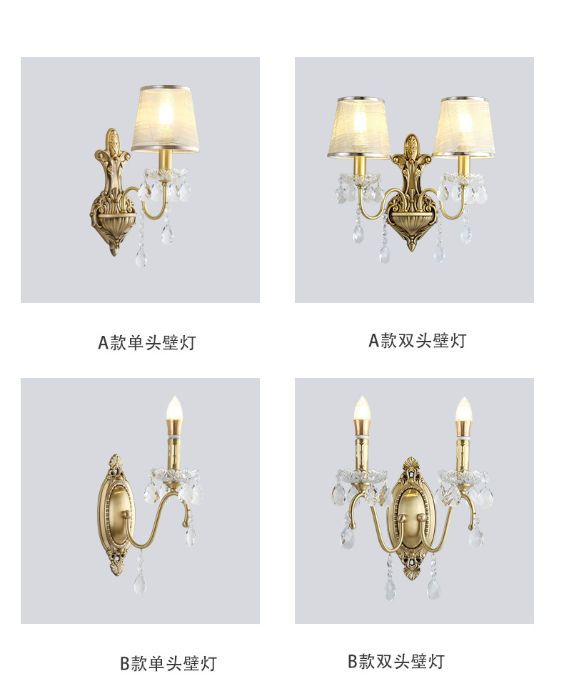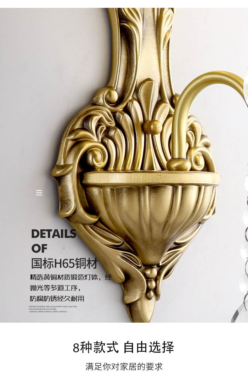 프랑스 복고풍 침실 머리맡 크리스탈 벽 램프 유럽 스타일의 거실 TV 배경 벽 램프 미국 전체 구리 왁스 벽 램프스토어 가기