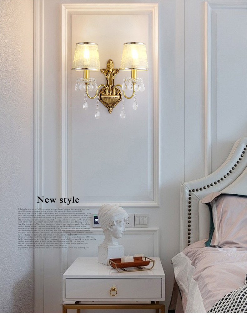 프랑스 복고풍 침실 머리맡 크리스탈 벽 램프 유럽 스타일의 거실 TV 배경 벽 램프 미국 전체 구리 왁스 벽 램프
