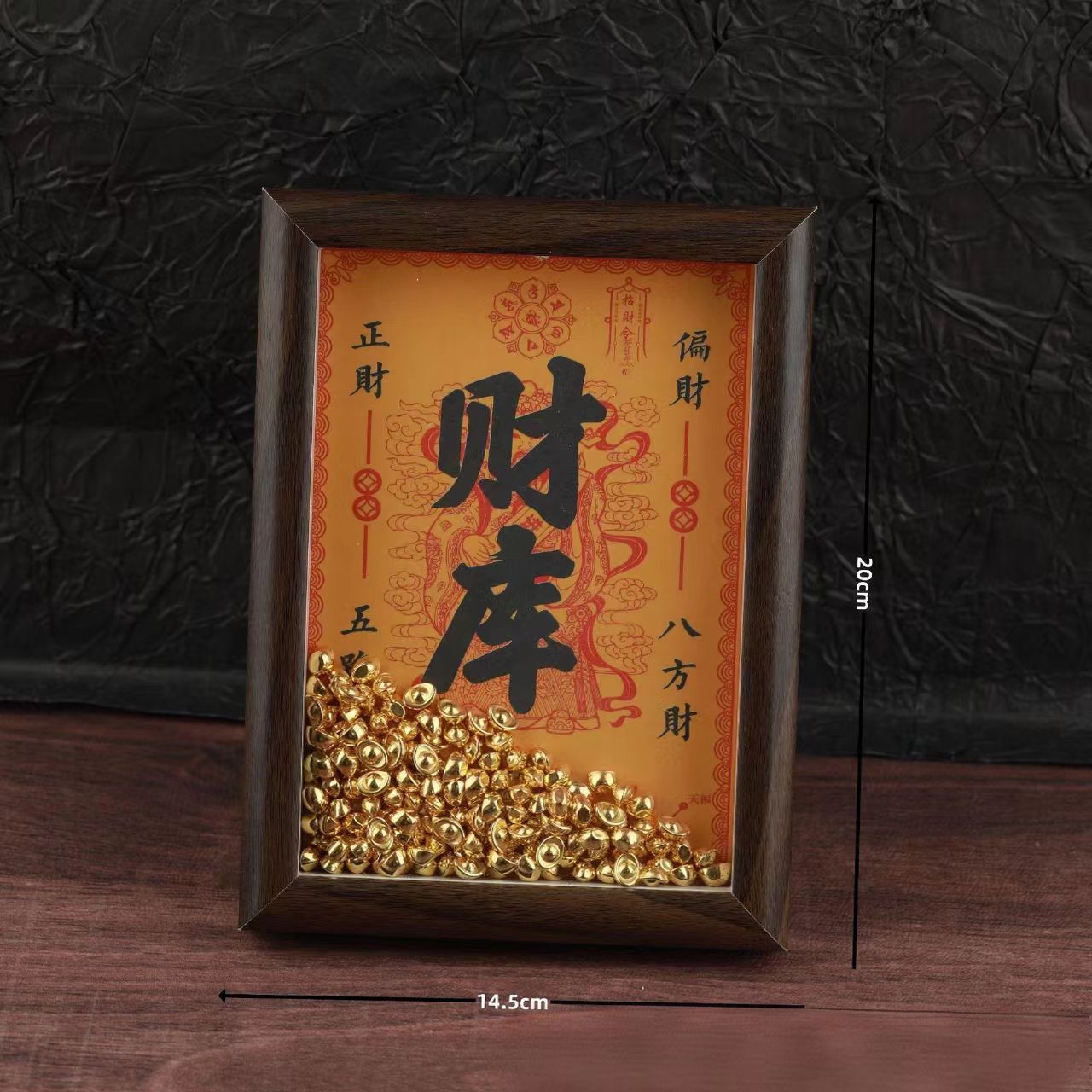 틱톡 인기 상품 재물 상자 액자, 재물 증가를 위한 6/7/ 8inch 액자 장식품, 황금 재물신 액자, 작은 원형 금괴 재물 상자