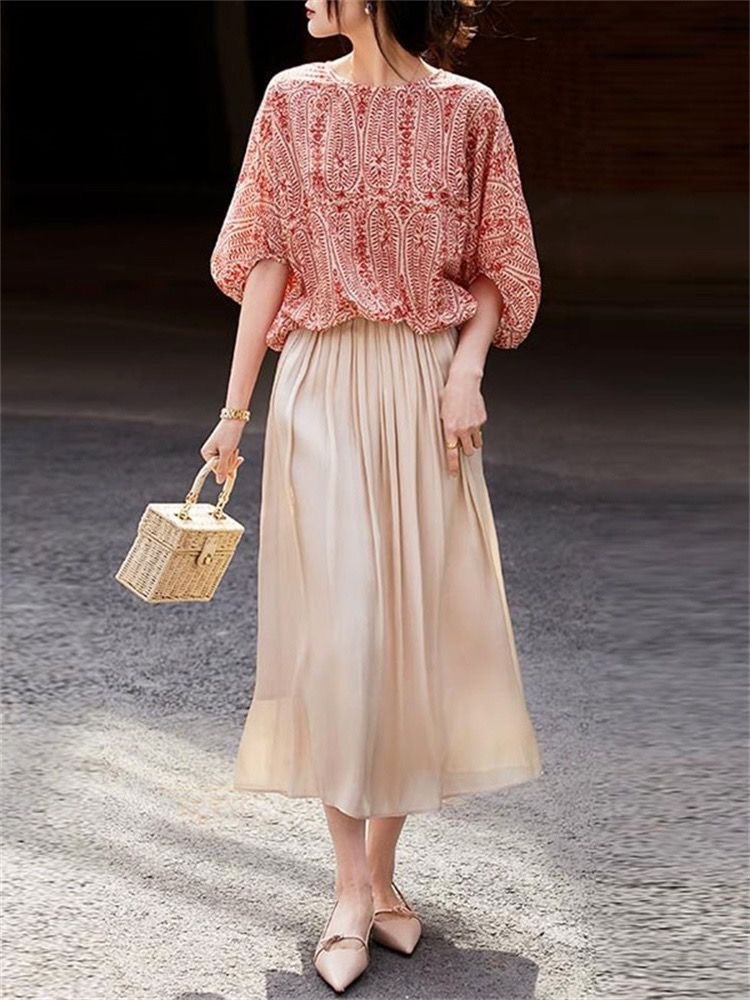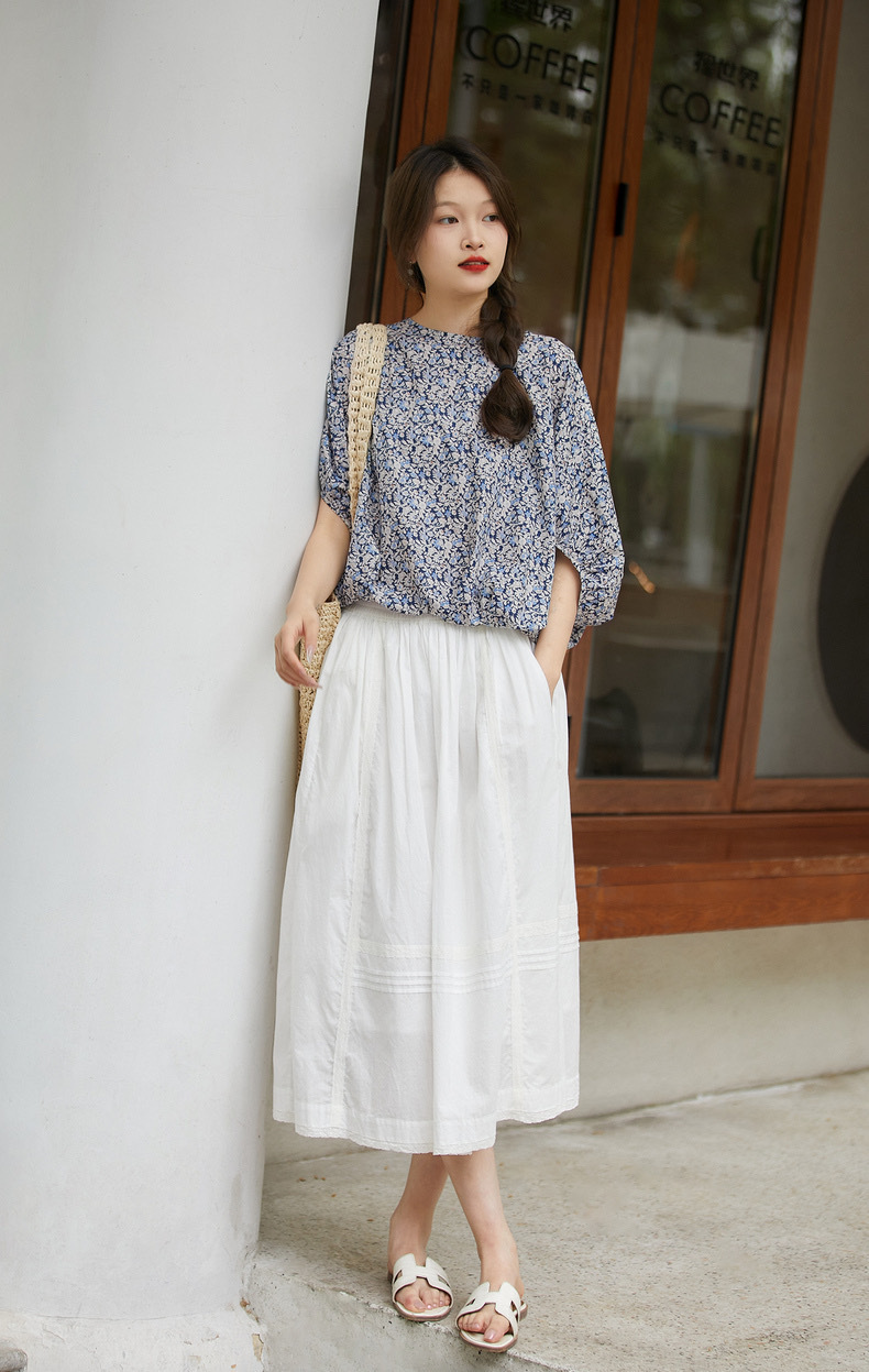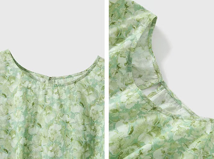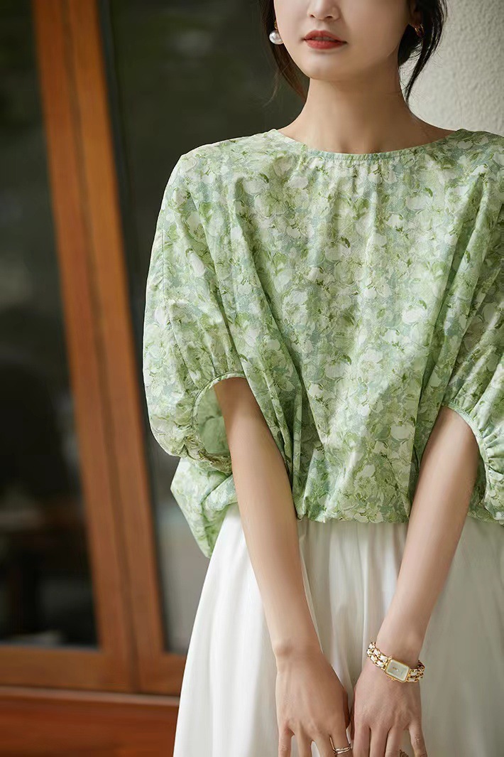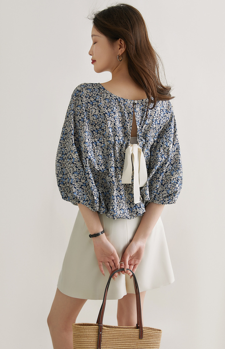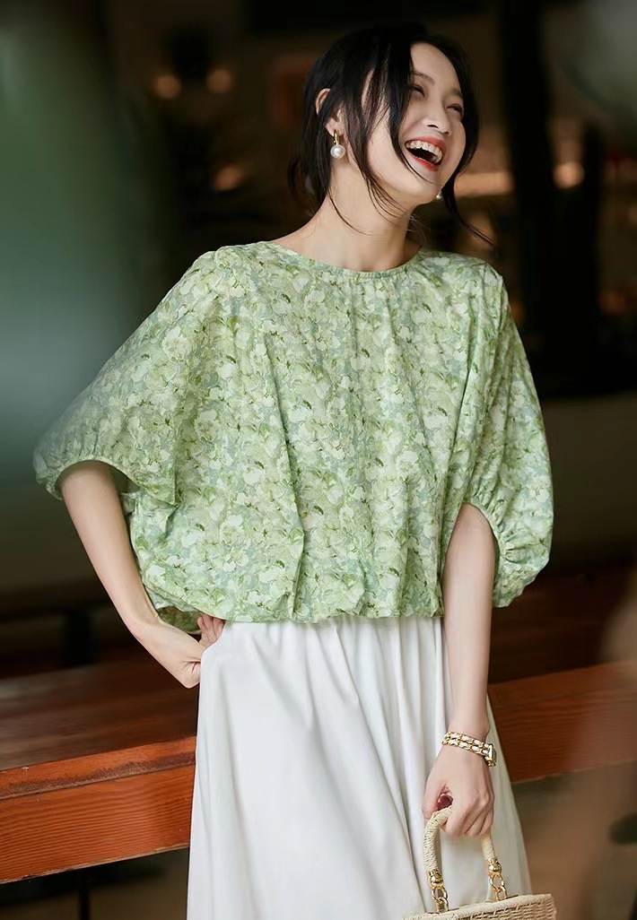 2025 새로운 여름 여성 꽃 무늬 쉬폰 탑 세련된 배트 슬리브 + 여성용 리본 셔츠스토어 가기