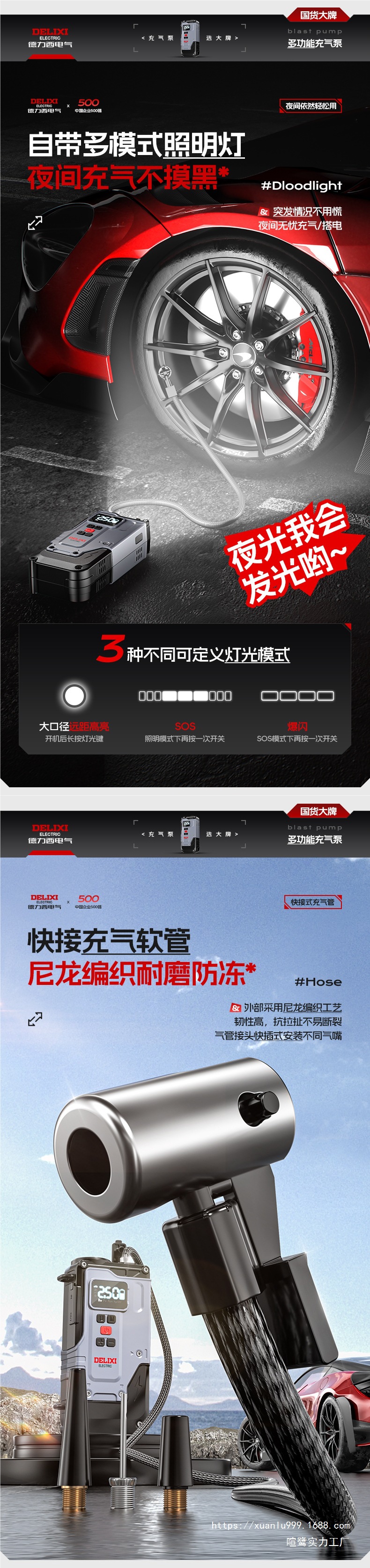 • [스마트 럭셔리 모델] 타이어 공기압 사전 설정 + 비상 조명 + 완전 충전 및 정지 + 타이어 공기압 + SOS 경고등 + 차량용 시가 라이터
