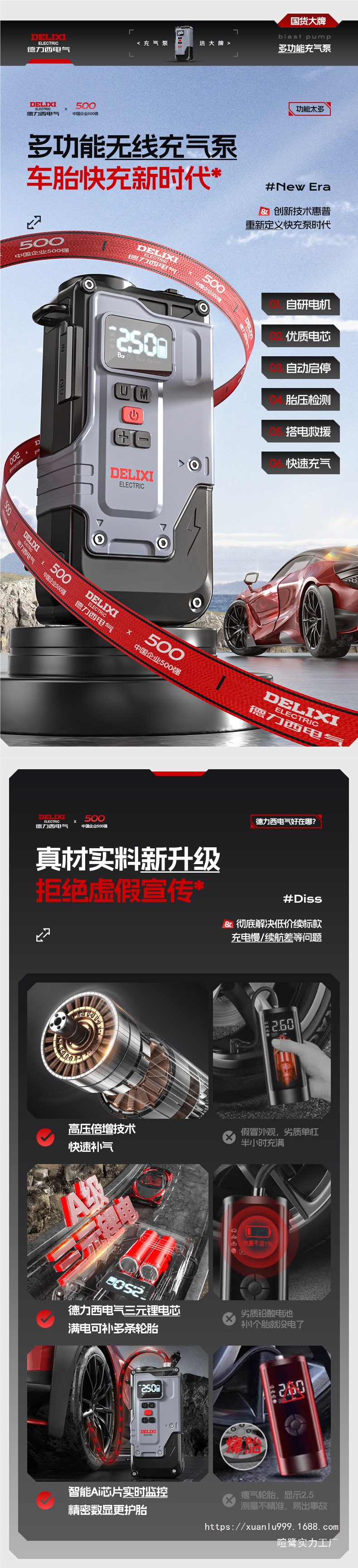 Delixi 전기 자동차 무선 공기 펌프 휴대용 자동차 전기 펌프 자동차 타이어 팽창기