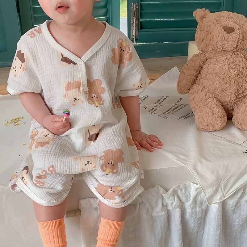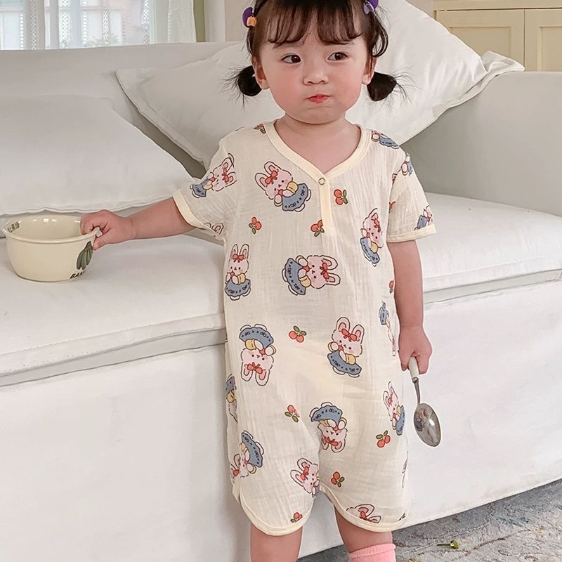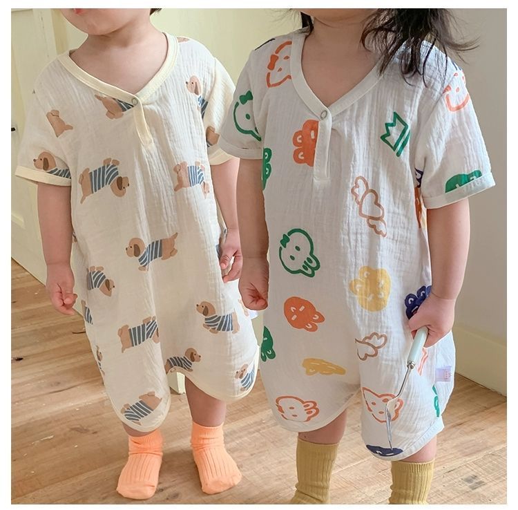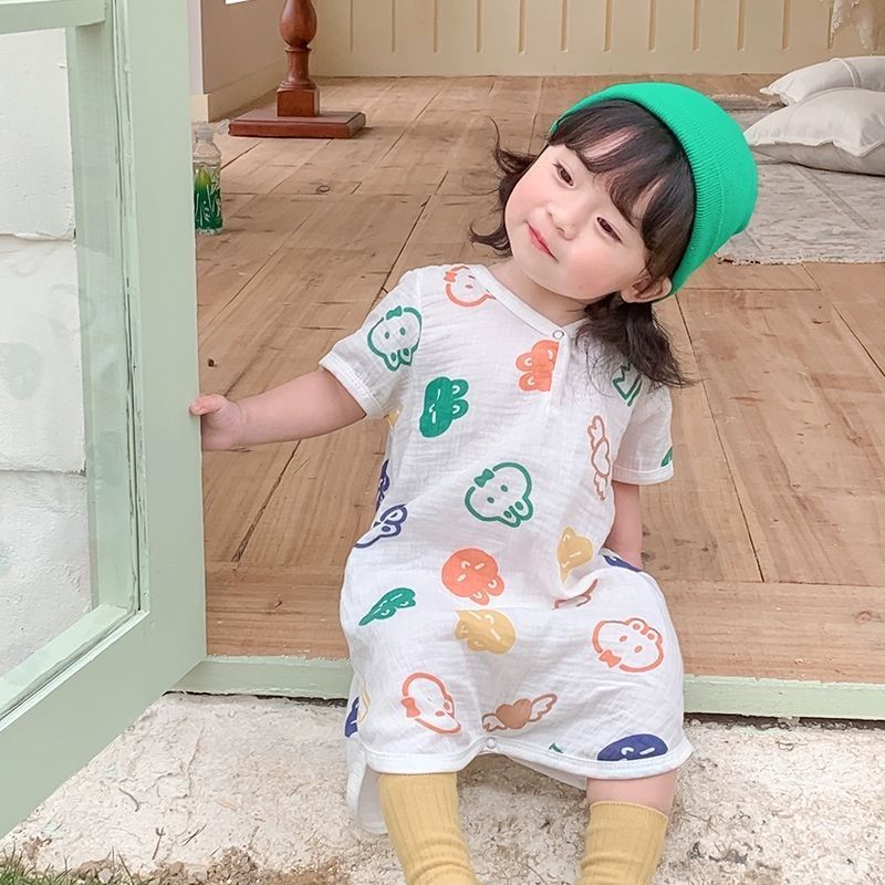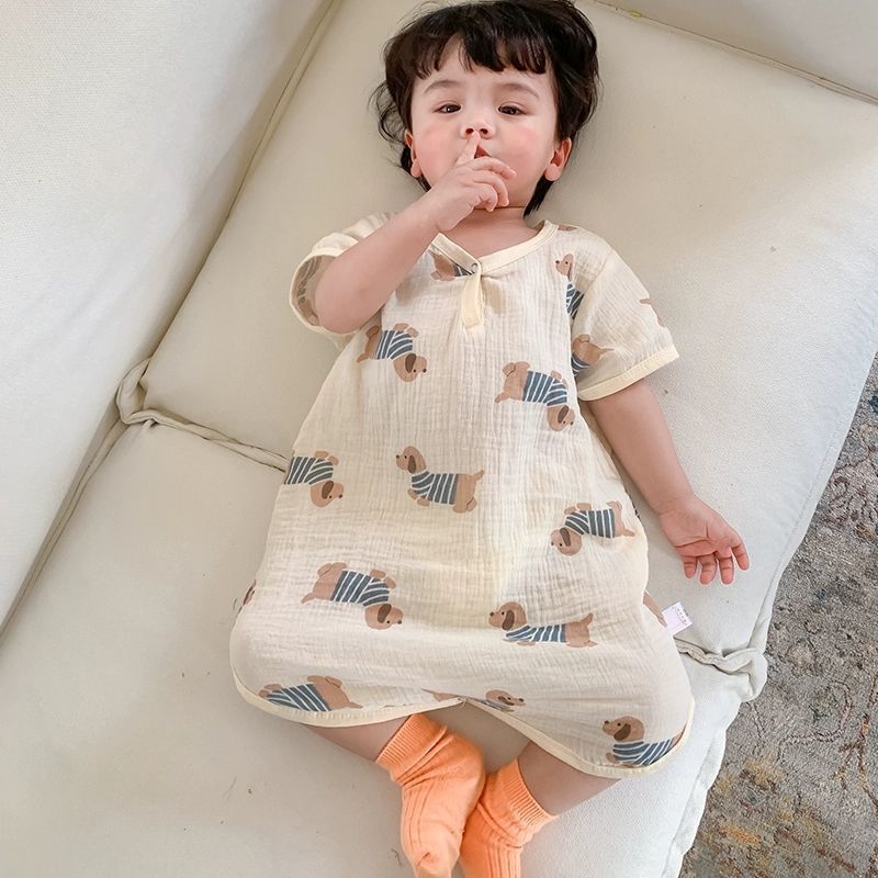 남아용 원피스 잠옷, 여름용 얇은 면 거즈 아동용 잠옷, 유아용 가정복, 여아용 발차기 방지 이불 침낭스토어 가기
