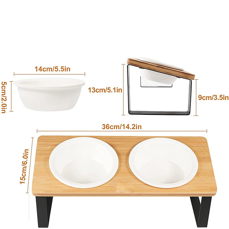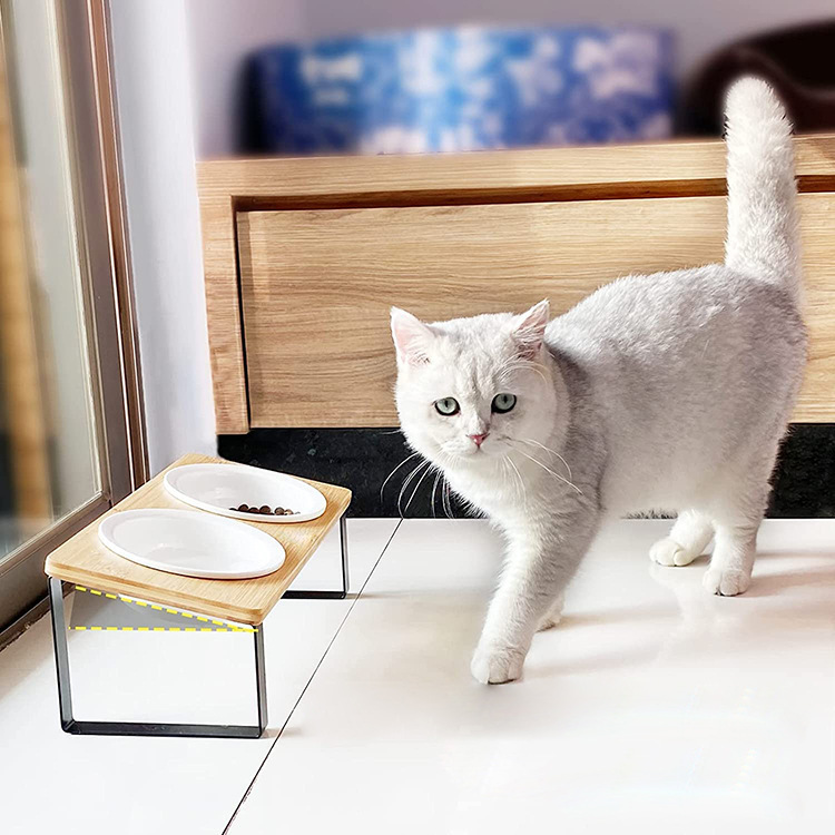 나무 고양이 그릇 랙 애완 동물 나무 고양이와 개 그릇 랙 더블 그릇 식품 그릇 랙 애완 동물 식기 작은 개와 고양이 애완 동물 식탁스토어 가기