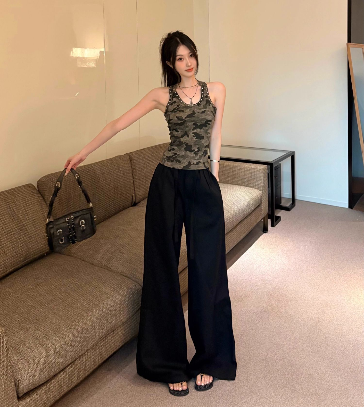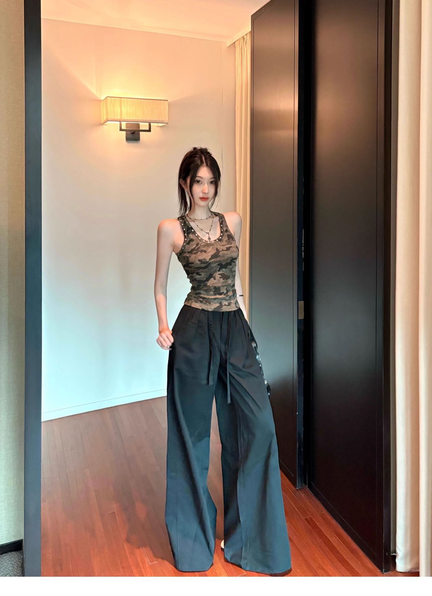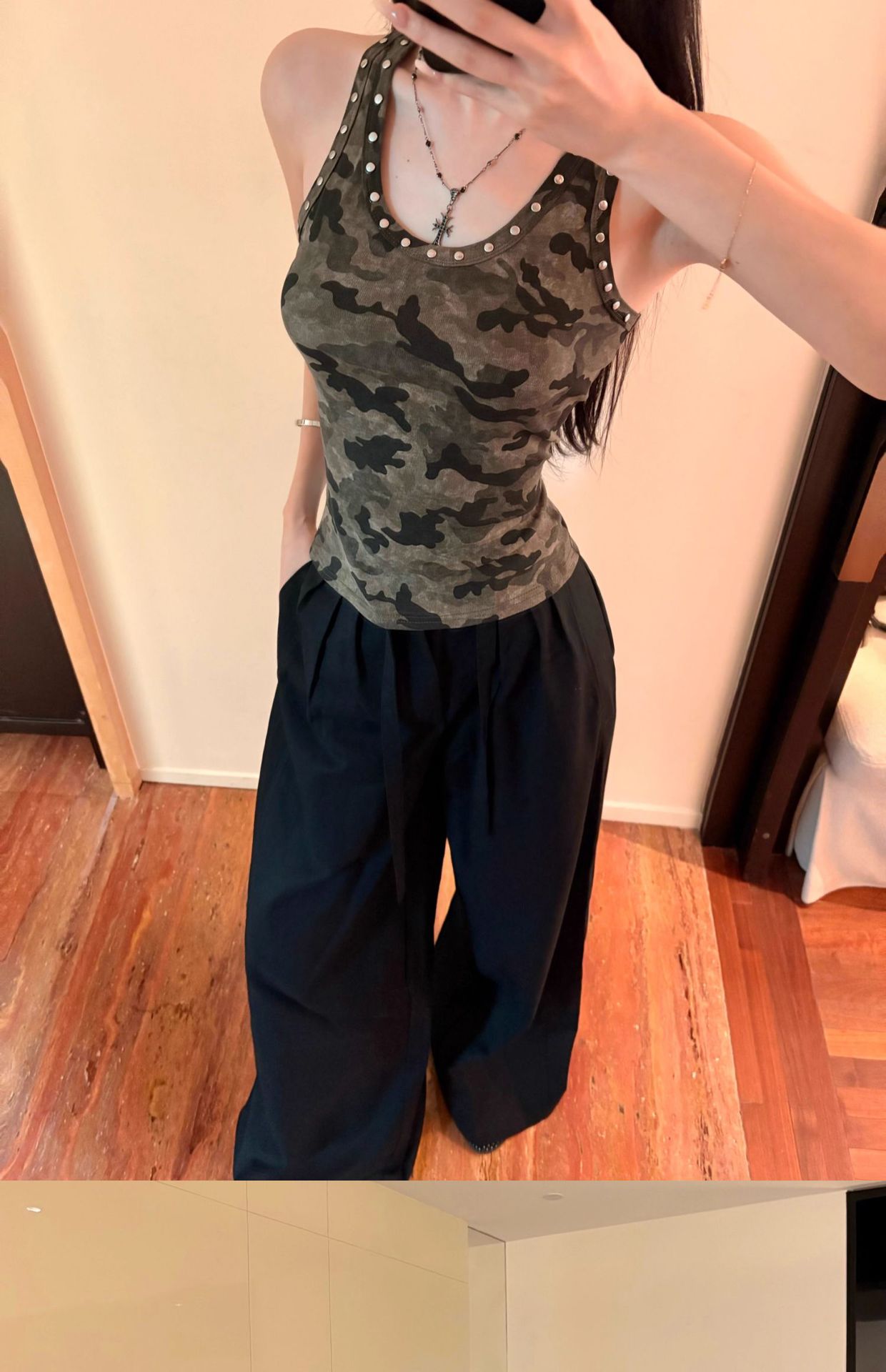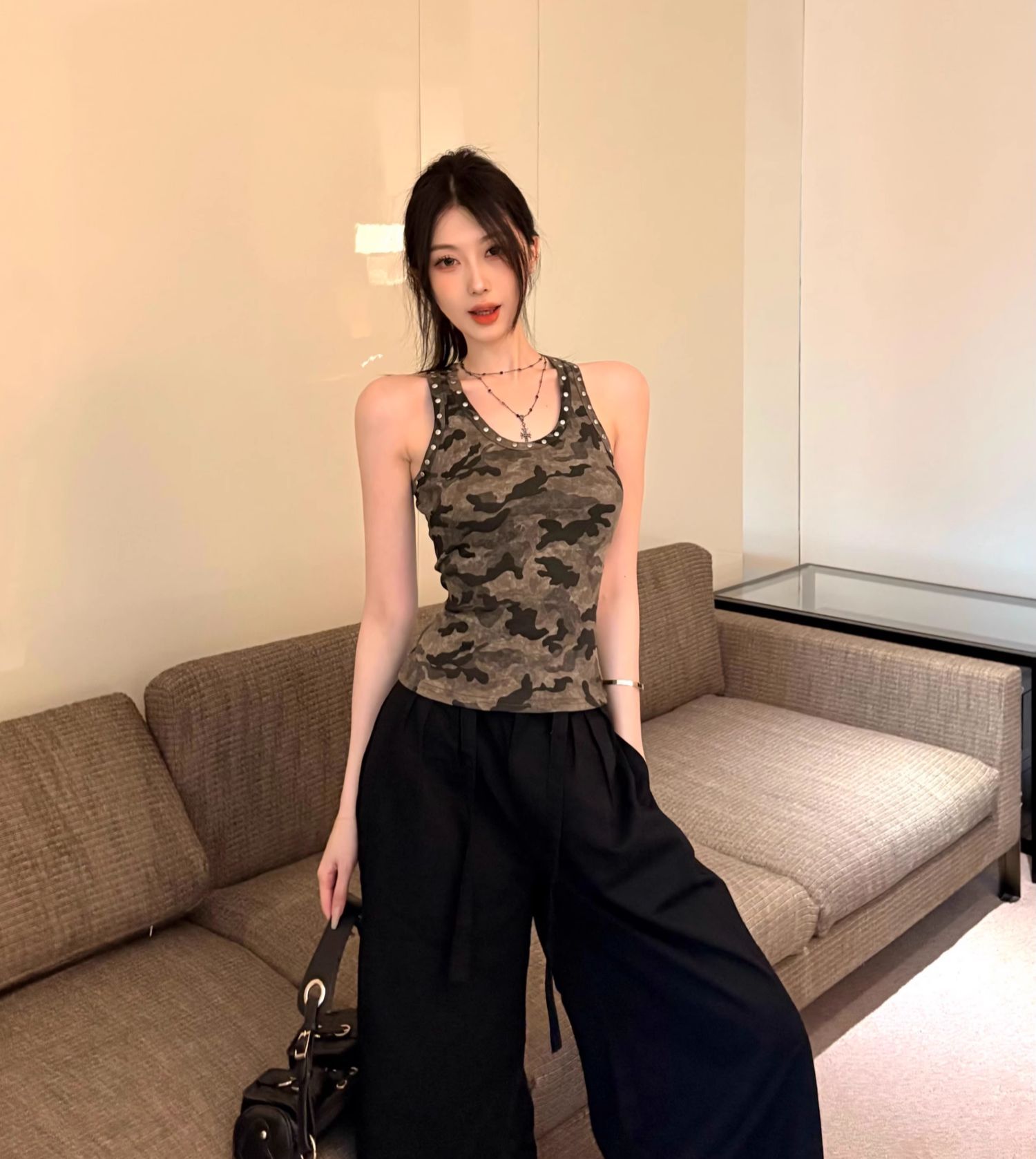 아메리칸 스위트 쿨 핫 걸 헤비 듀티 리벳 카모플라주 캐미솔 여성 여름 아우터 민소매 U 넥 워크웨어 탑