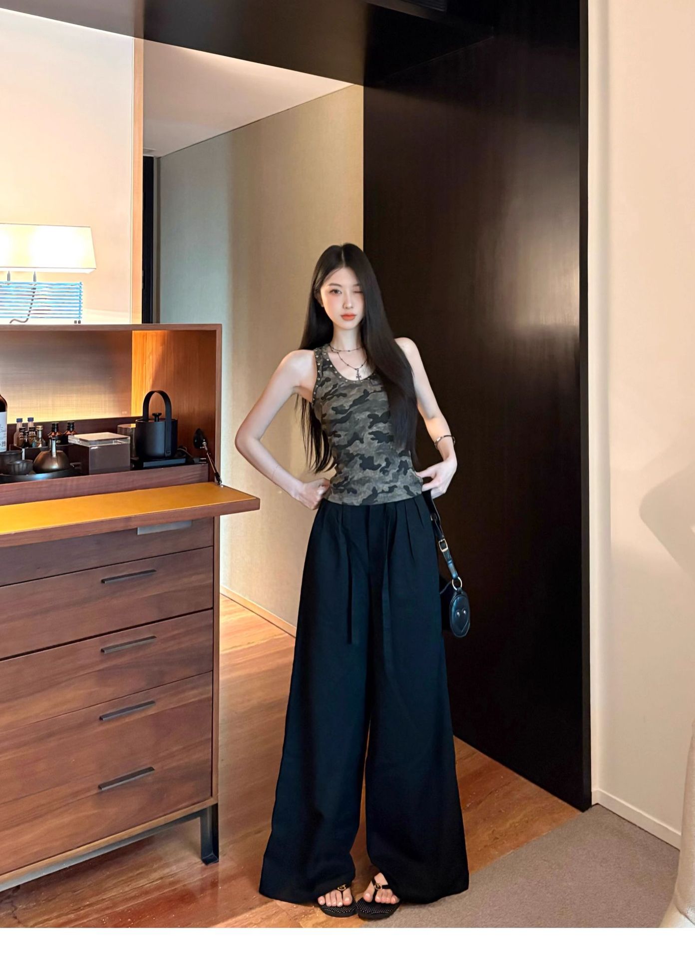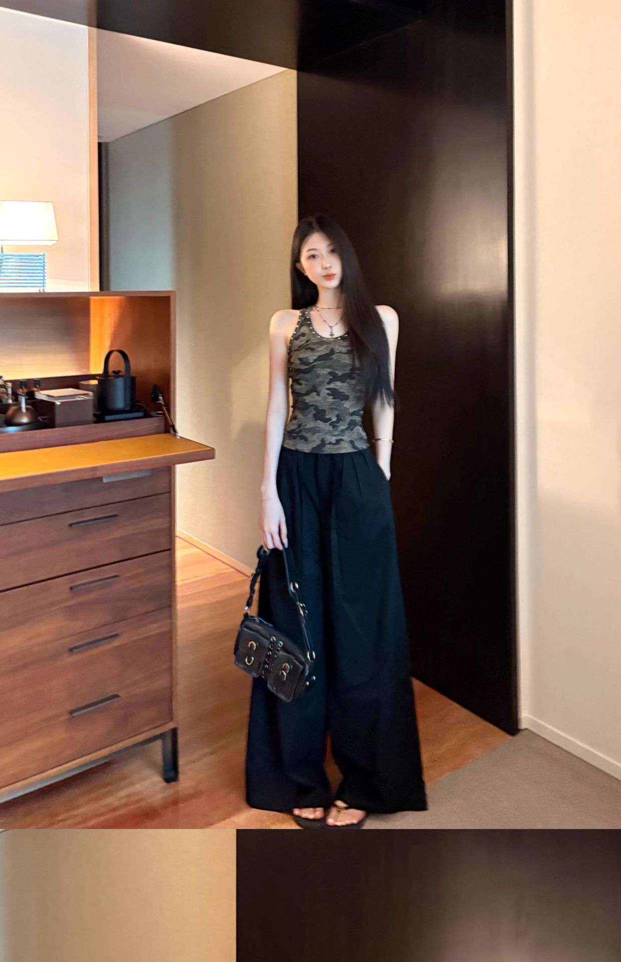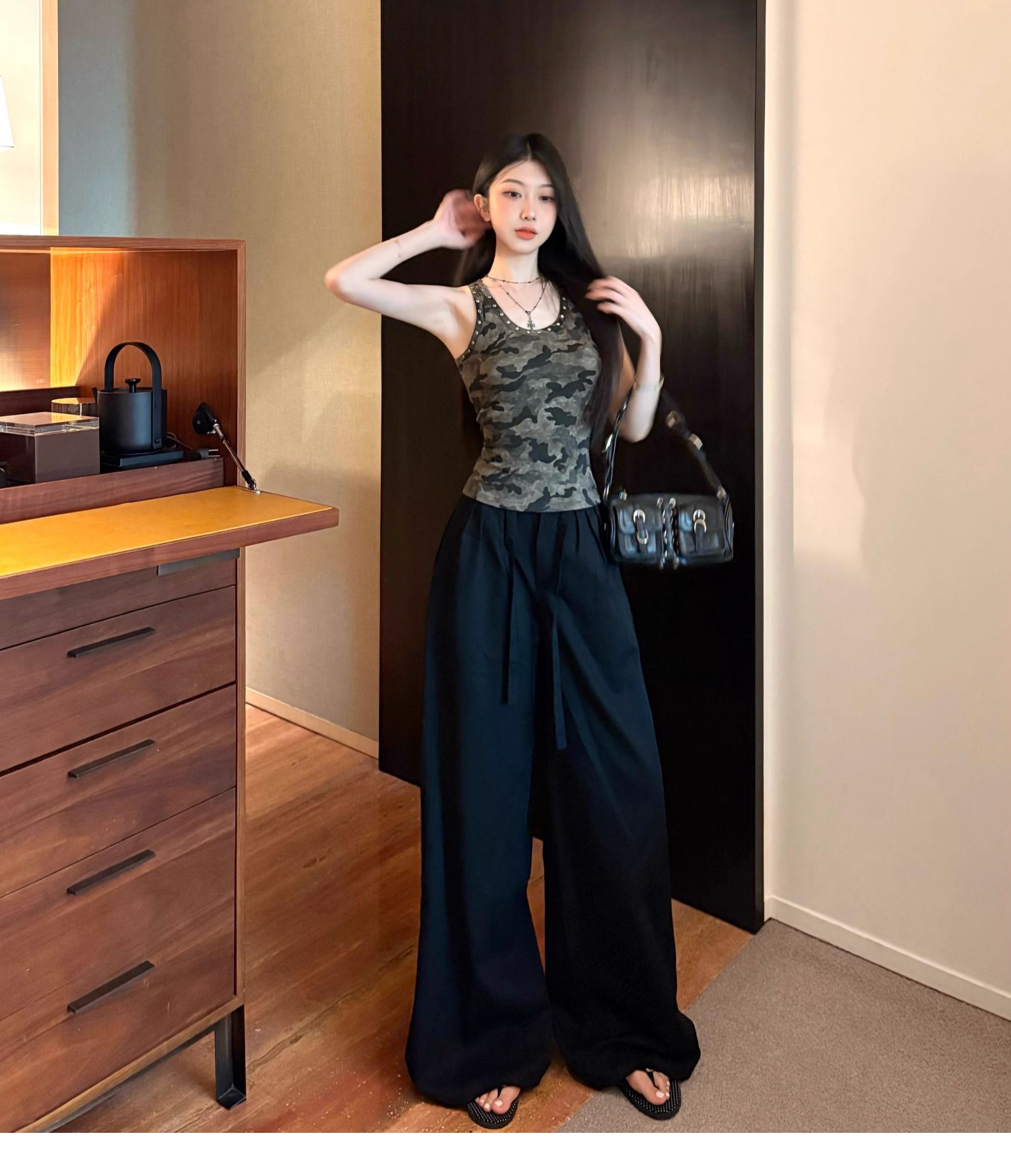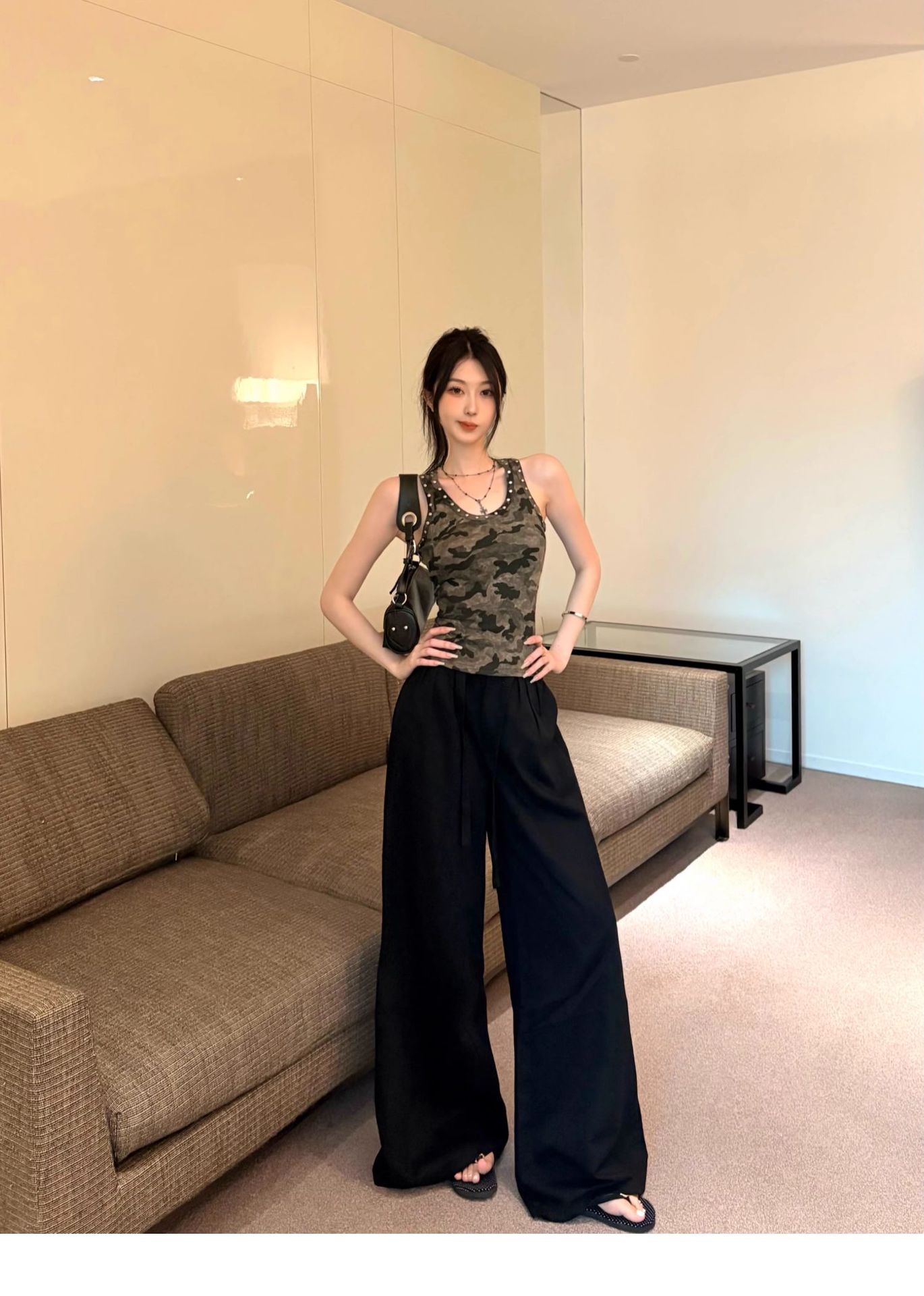아메리칸 스위트 쿨 핫 걸 헤비 듀티 리벳 카모플라주 캐미솔 여성 여름 아우터 민소매 U 넥 워크웨어 탑