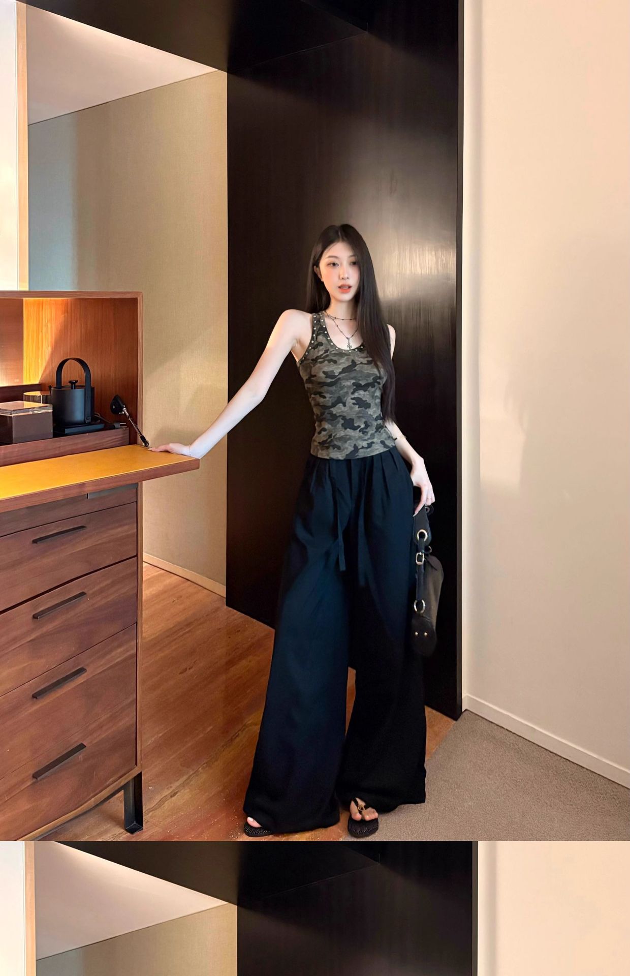 아메리칸 스위트 쿨 핫 걸 헤비 듀티 리벳 카모플라주 캐미솔 여성 여름 아우터 민소매 U 넥 워크웨어 탑스토어 가기