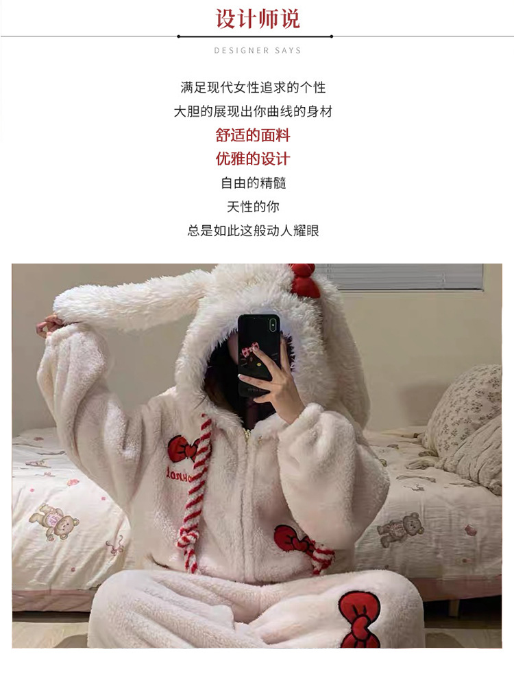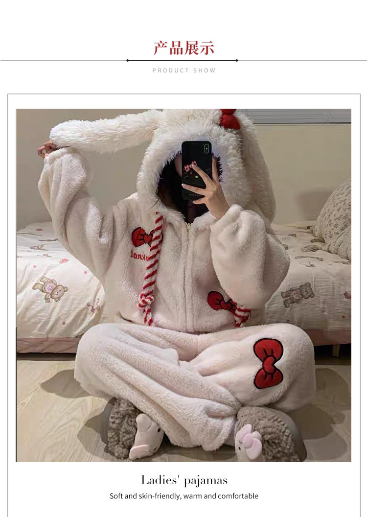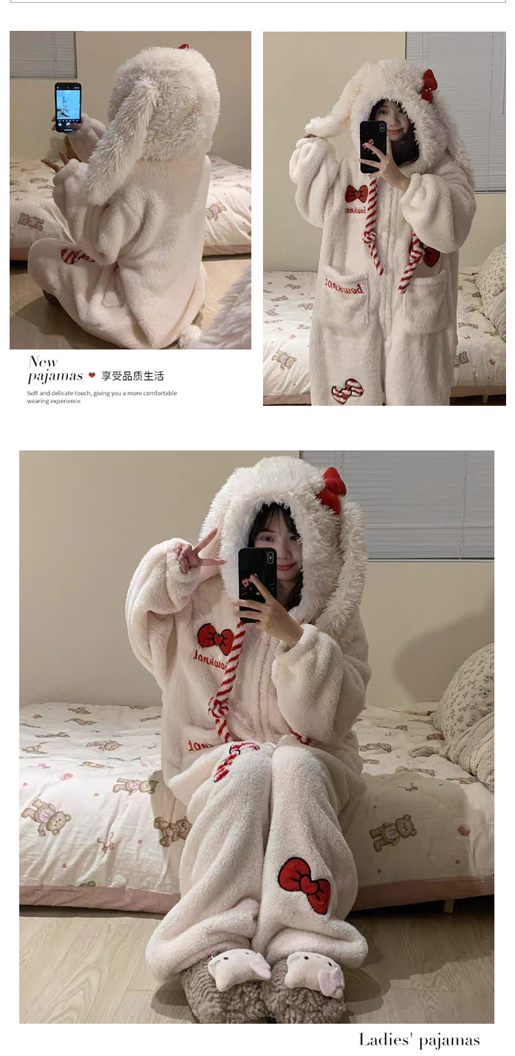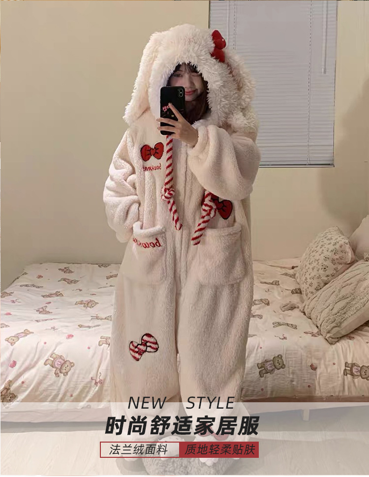 겨울 귀여운 소녀 만화 산호 벨벳 원피스 잠옷 여성 겨울 2025 따뜻한 원피스 홈웨어 인스토어 가기