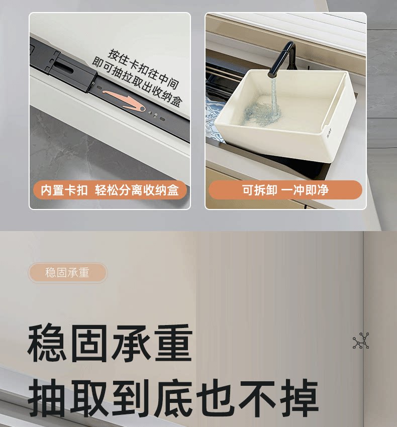 주방용 슬라이딩 수납 선반, 캐비닛 내 서랍형 수납 정리함, 다기능 수납 박스, 수납 바구니, 싱크대 슬라이딩 바구니