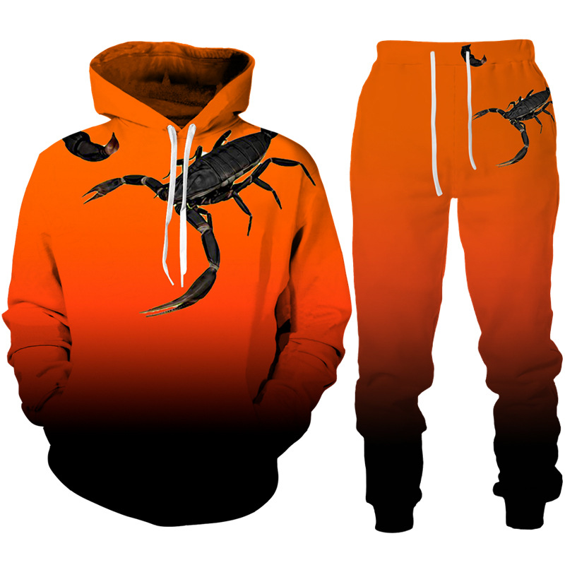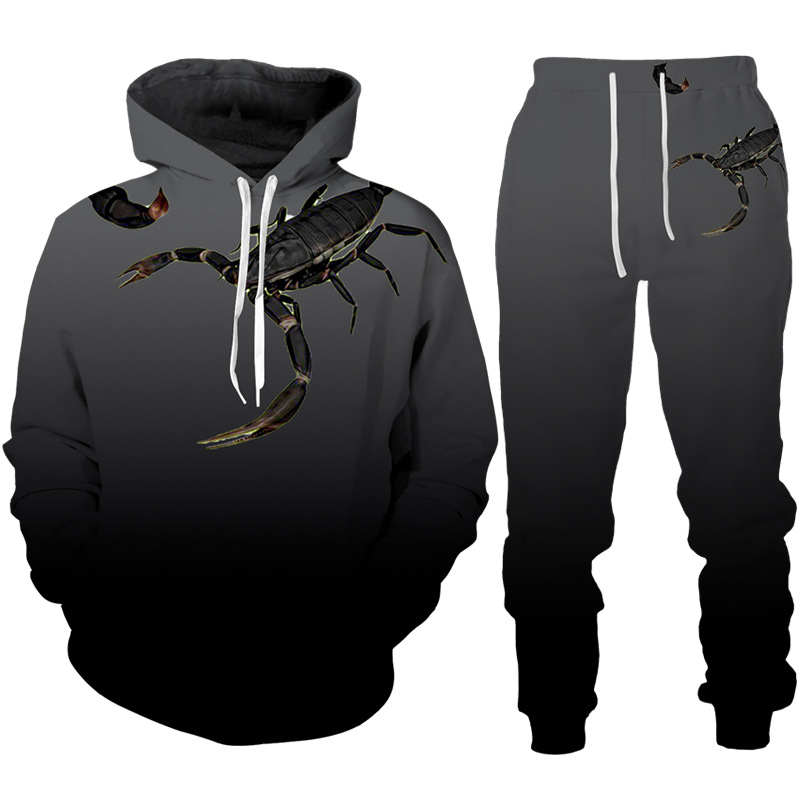 2025 봄과 가을 패션 새로운 국경 간 대외 무역 전갈 3D 디지털 인쇄 캐주얼 남성 후드 티셔츠 정장