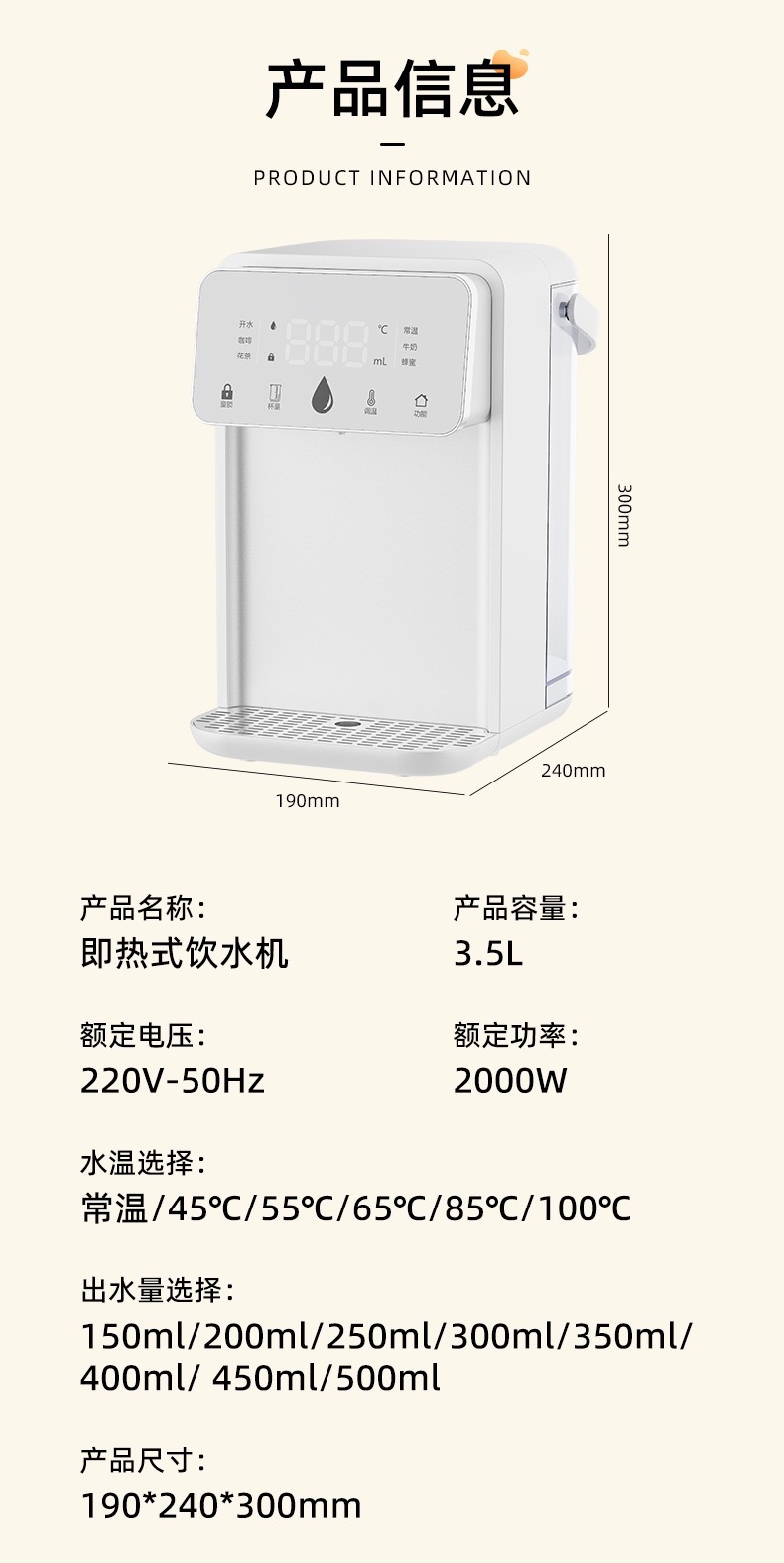국경 간 인스턴트 온수 디스펜서 일정한 온도 데스크탑 사무실 홈 인스턴트 온수 데스크탑 직접 식수 정수기 인스턴트 온수
