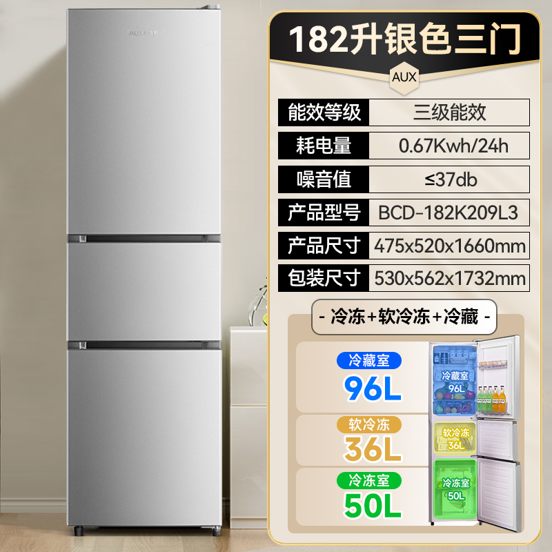 • 실버·182L·3도어 냉장고 | 1년 무료 교체 | 업그레이드되고 두꺼워진 버전