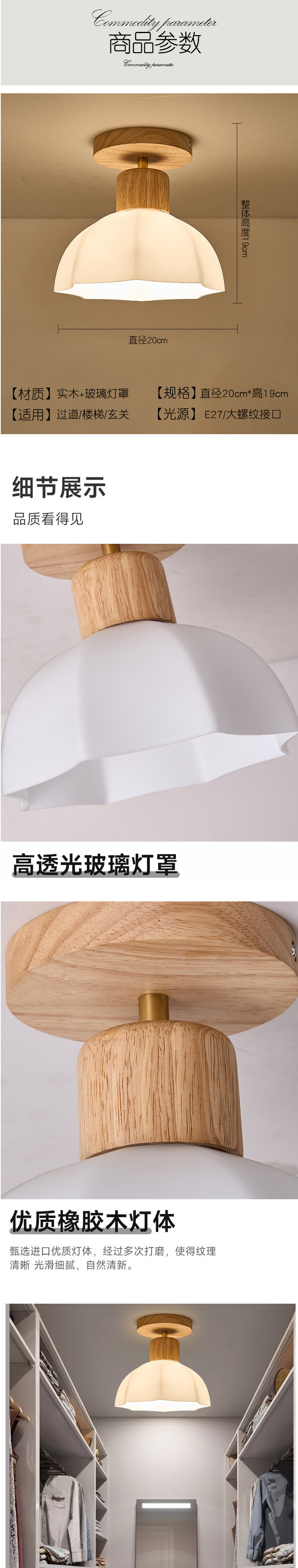 2025 북유럽 스타일 단단한 나무 호두 색상 입구 램프 나무 색상 인체 유도 음성 제어 입구 통로 램프 복도스토어 가기