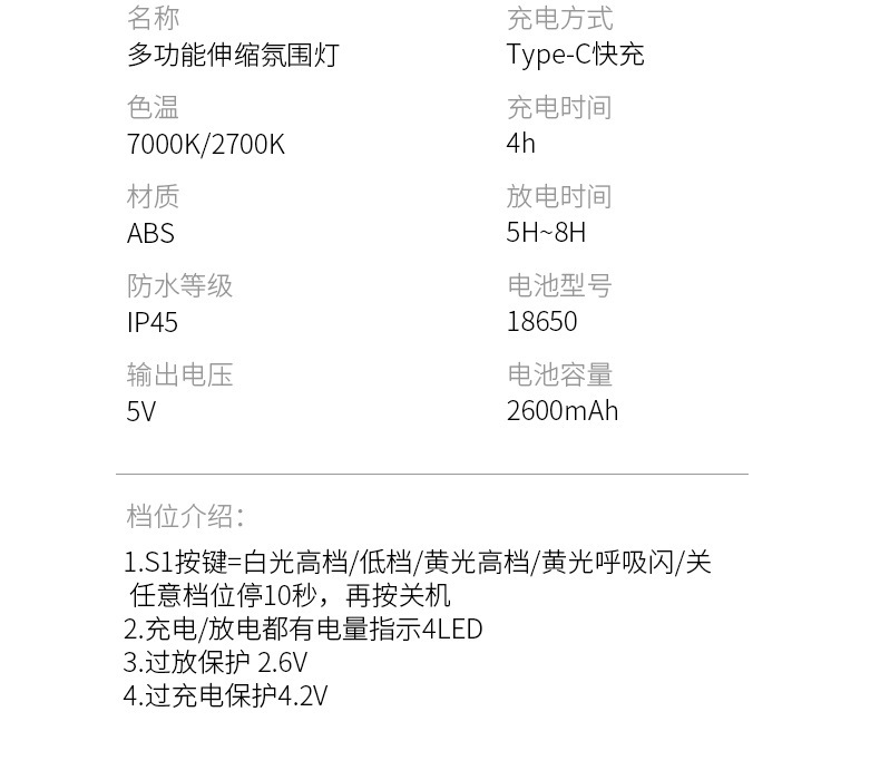 야외 개폐식 캠핑 램프, 충전식 2색 분위기 보조 조명, 자기 작업 램프, 자동차 수리 램프, 휴대용 텐트 램프