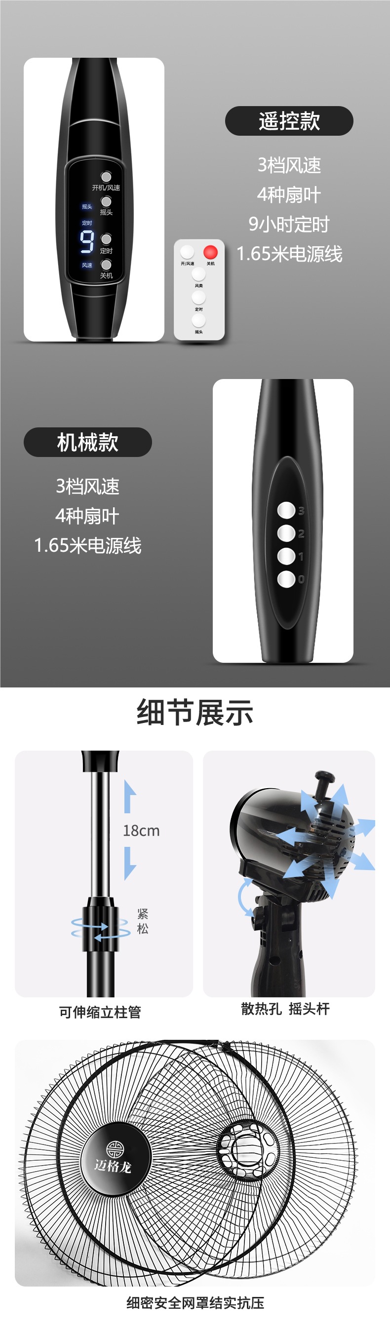 전기 팬 플로어 팬 가정용 자동 강력한 수직 기숙사 침실 원격 제어 팬 진동 타이밍 에너지 절약 팬스토어 가기