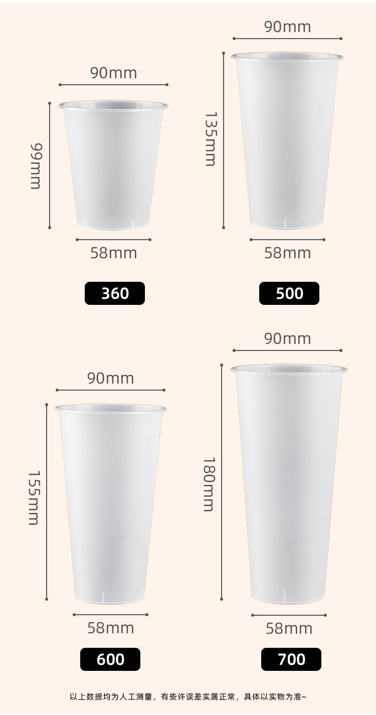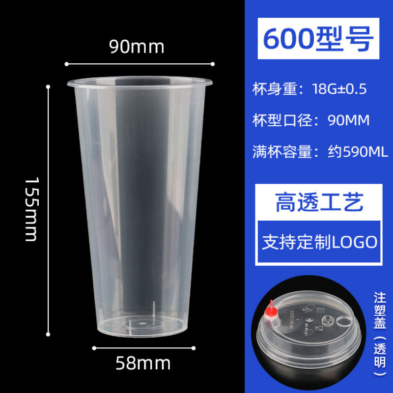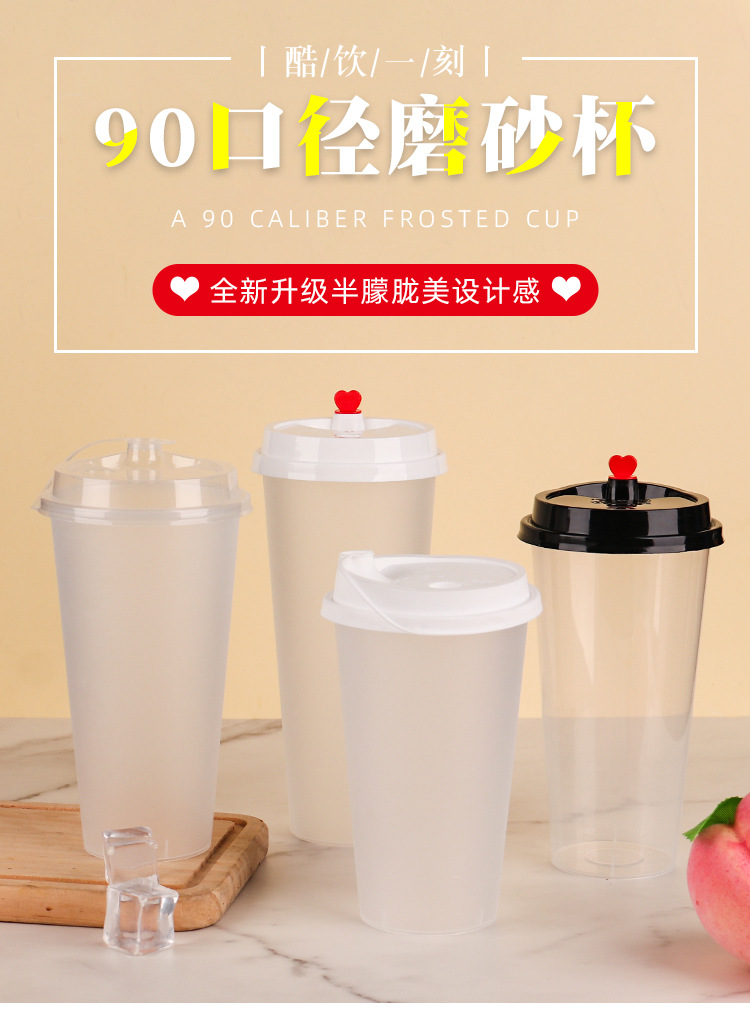 90 구경 밀크 티 컵 일회용 주입 컵 뚜껑 포함 음료 젖빛 컵 500 로고 제작 상업용 700ml스토어 가기