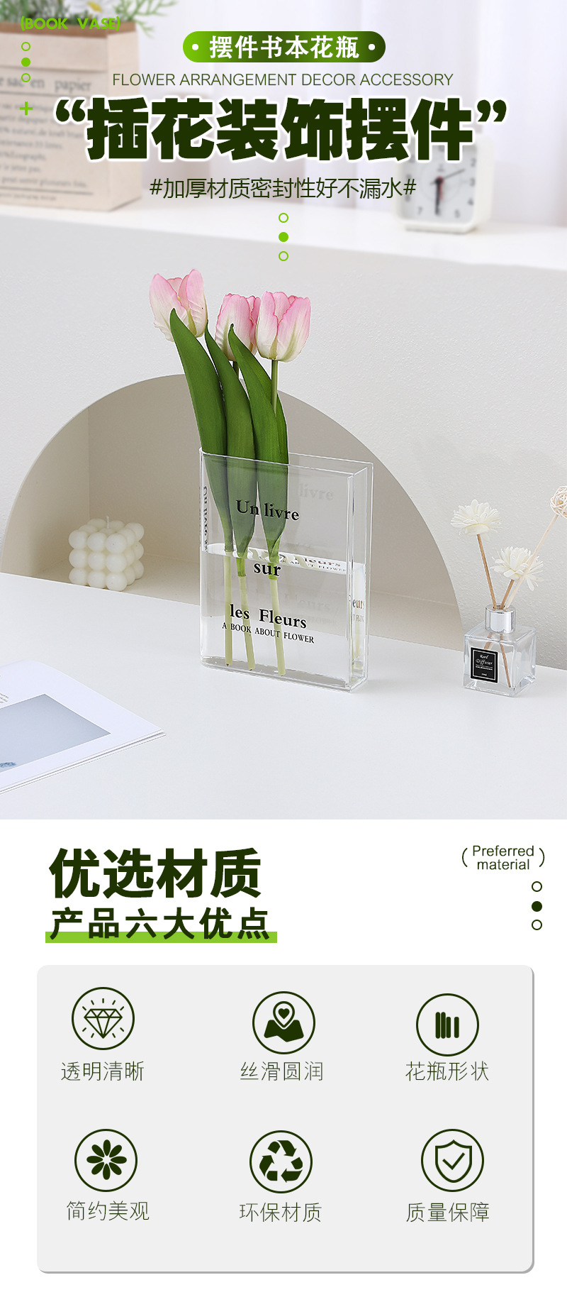 책 모양 아크릴 투명 꽃병 수경재배 꽃꽂이 레스토랑 테이블 창의적 장식품