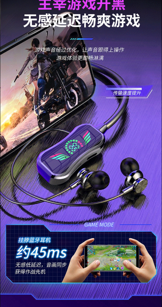 무선 넥밴드 블루투스 이어폰, 라이브 방송, 노래방, 스포츠, 긴 배터리 수명, 121 e스포츠, 초장시간 e스포츠 게임, 소음 감소