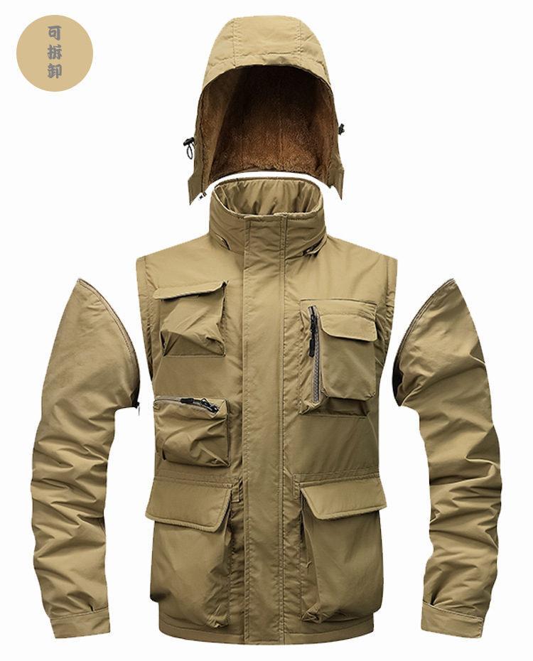 탈부착 가능한 슬리브 재킷 남성용 신작 봄, 가을 야외 방풍 재킷 루즈한 대형 캐주얼 멀티 포켓 워크 재킷