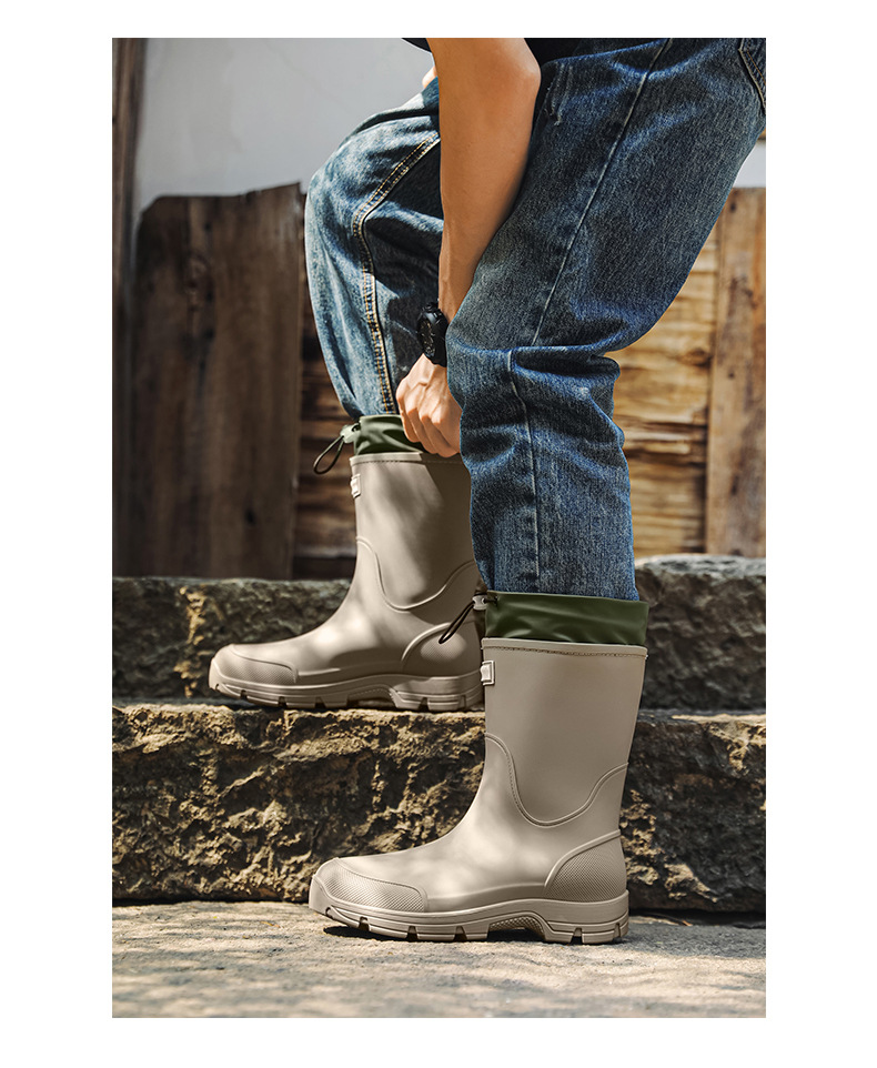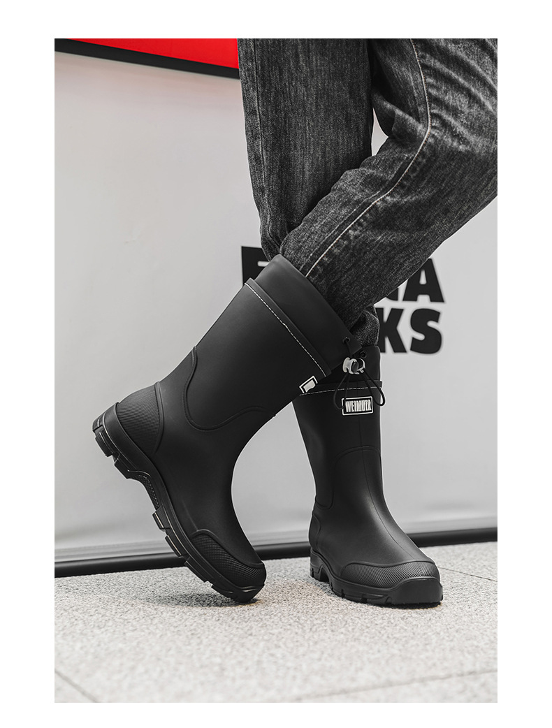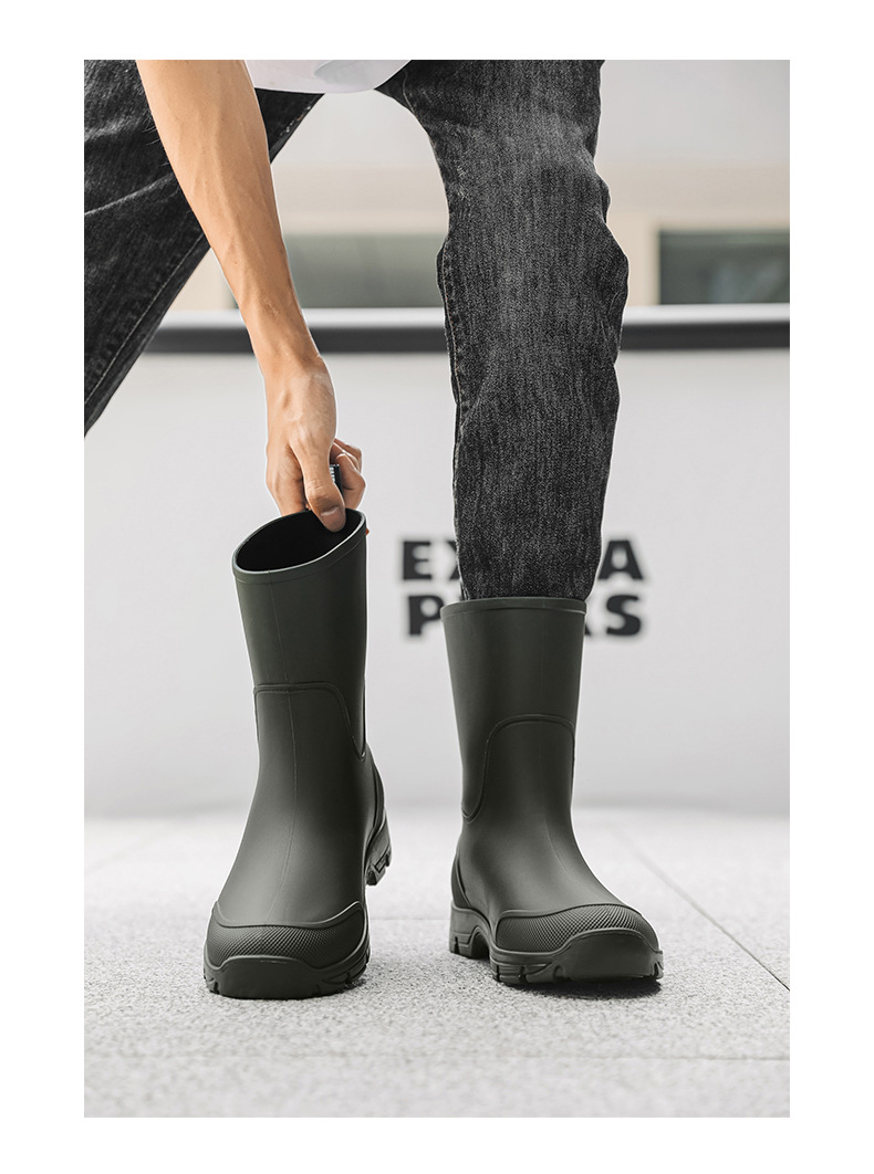 고품질 일본 및 한국 패션 중간 길이 남성용 레인부츠, 야외용 두꺼운 밑창 방수 레인부츠, 미끄럼 방지 주방용 고무신, 다용도 세차용 신발