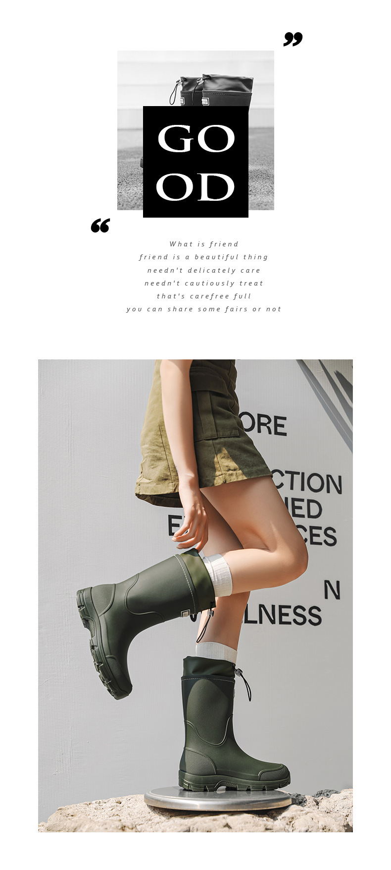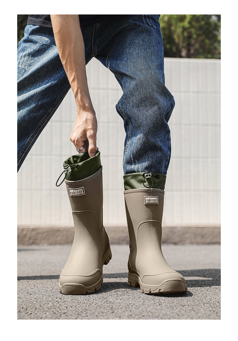고품질 일본 및 한국 패션 중간 길이 남성용 레인부츠, 야외용 두꺼운 밑창 방수 레인부츠, 미끄럼 방지 주방용 고무신, 다용도 세차용 신발스토어 가기