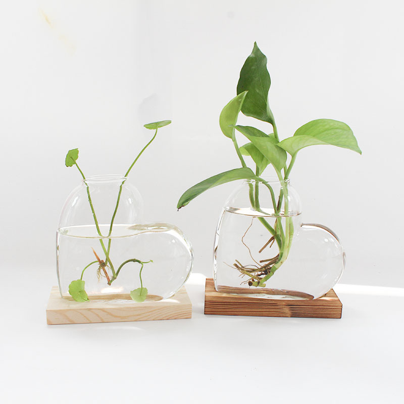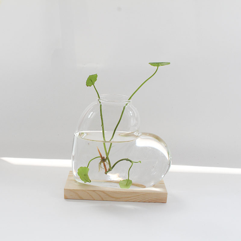 크리 에이 티브 투명 사랑 유리 꽃병 나무베이스 꽃병 수경 재배 식물 홈 장식 장식품
