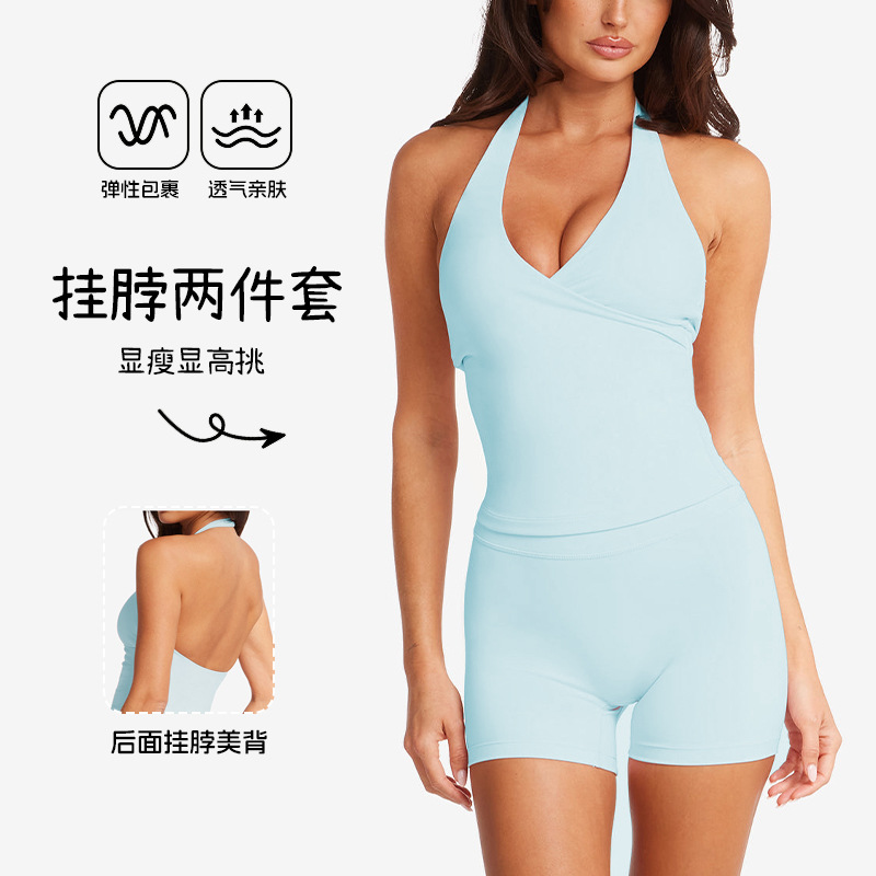 홀터넥 스포츠 조끼 세트, 힙 리프팅 스포츠 반바지, 피트니스 운동복, 러닝 요가 팬츠, 요가복, 여성용 슈트스토어 가기